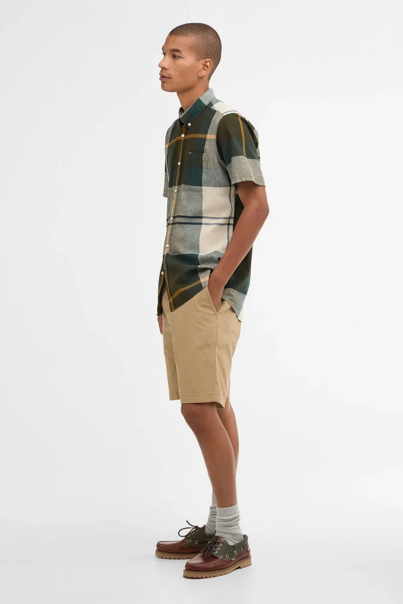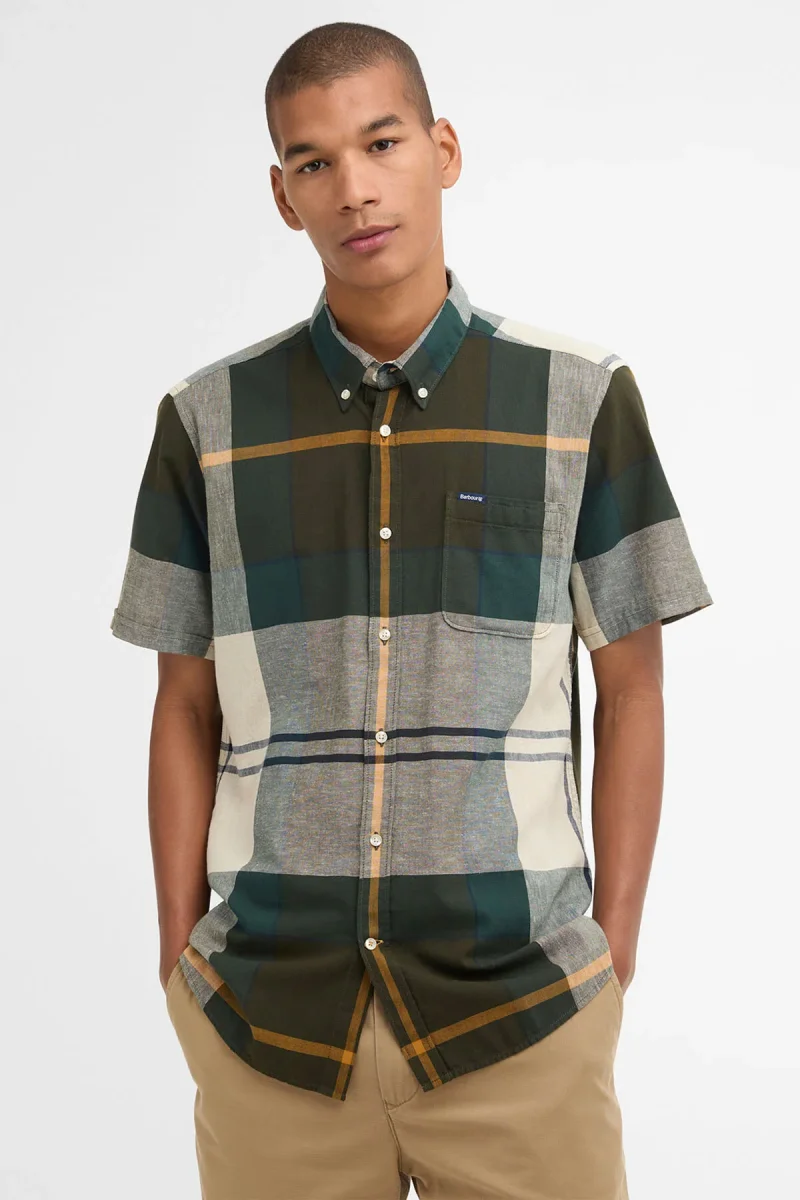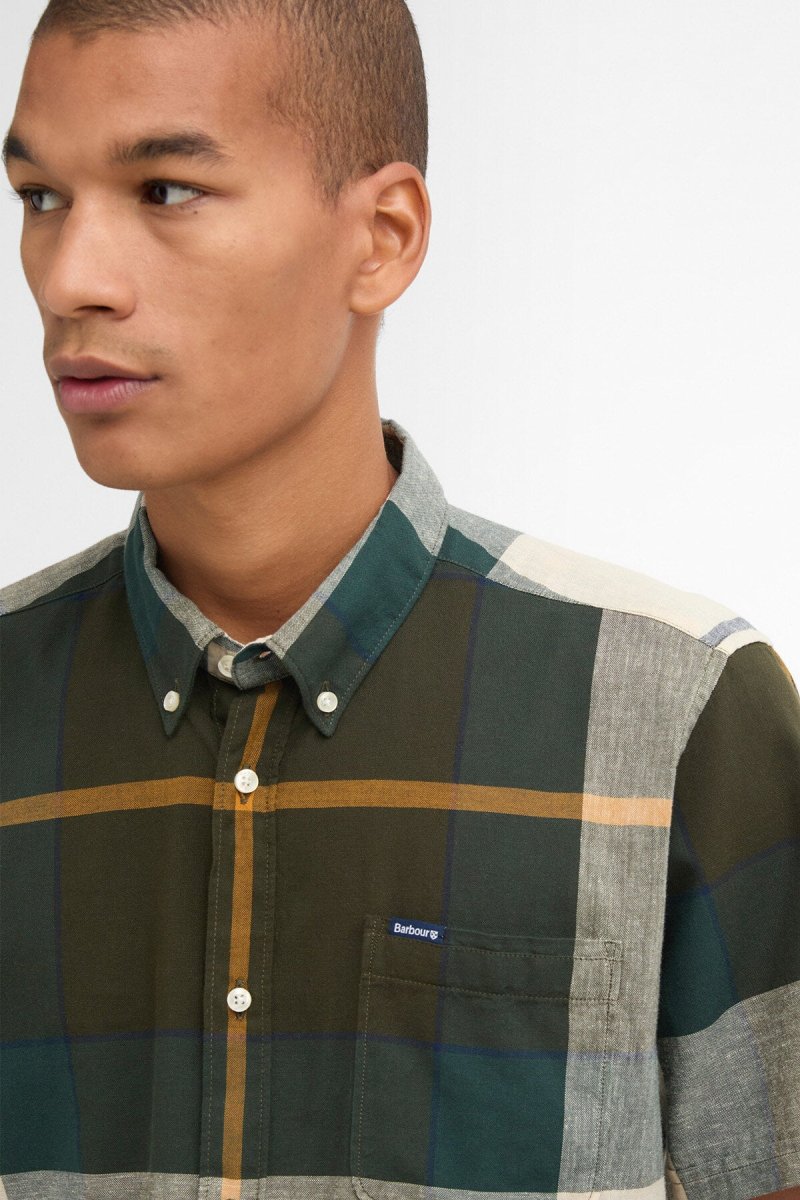 La camicia a maniche corte Barbour Douglas è realizzata nel classico motivo tartan. Con un colletto button down, questa camicia è realizzata in misto cotone e lino per un comfort unico ed è rifinita con Presenta una stampa con marchio Barbour sulla tasca sinistra sul fronte.