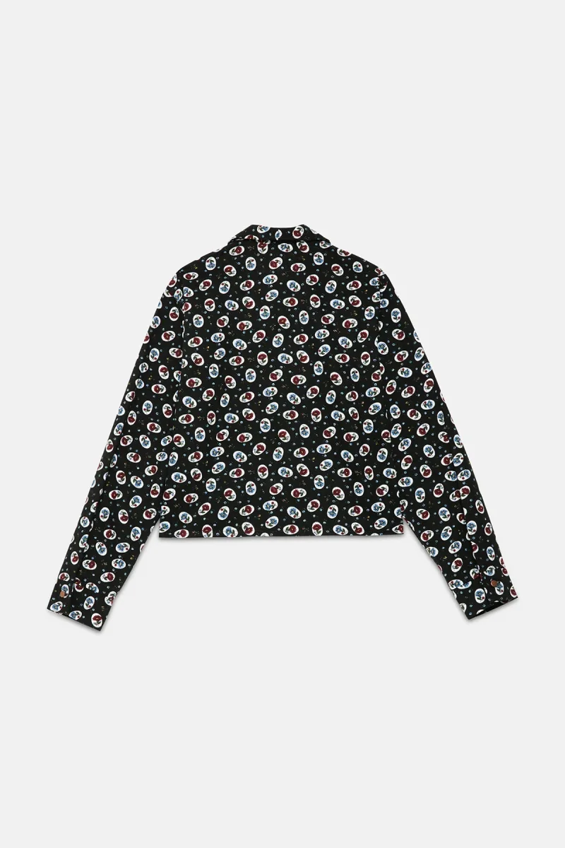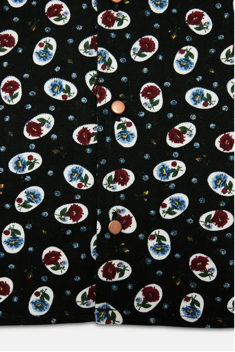Comfort e aspetto seventies con un tocco di femminilità, camicia di flanella WP Archivio in 100% cotone dalle linee boxy, bottoni in madreperla e delicato colletto a lancia in microstampe fioratenei toni avvolgenti del nero, burgundy e azzurro, per donare un aspetto più dolce al proprio autunno.