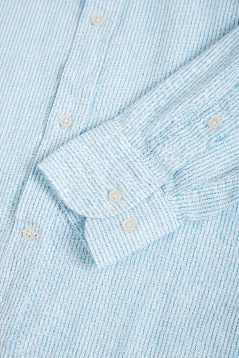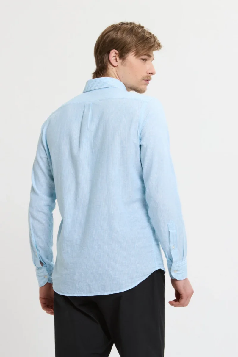 Ideale per le giornate estive, questa camicia presenta un’elegante fantasia a righe e colletto button down, che rendono il capo adatto non solo ai tuoi look casual, ma anche a quelli più eleganti e formali.