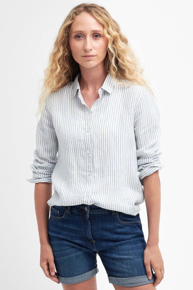Caratterizzata da un taglio rilassato in puro lino morbido ed estivo, è un capo layer perfetto per le giornate più calde. Caratterizzata da colletto sottile e orlo curvo per un tocco femminile, la camicia è rifinita con un discreto stemma metallico sul retro del collo.