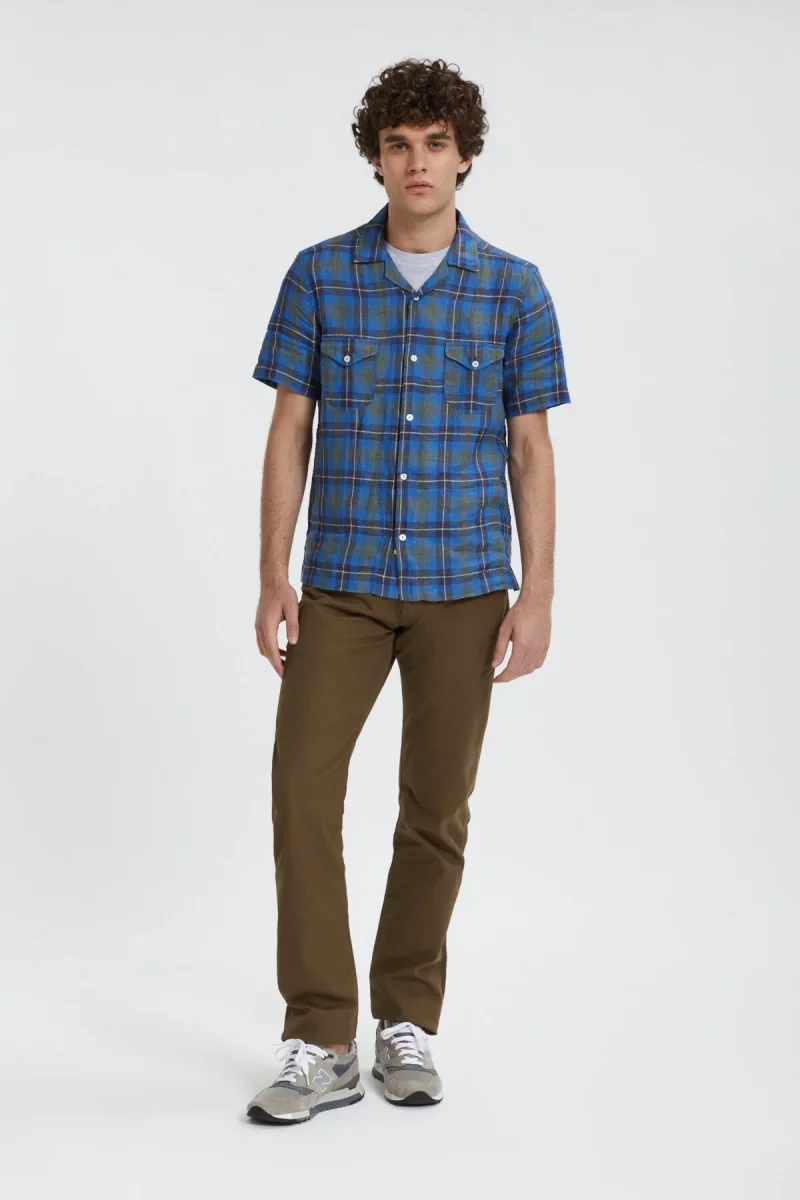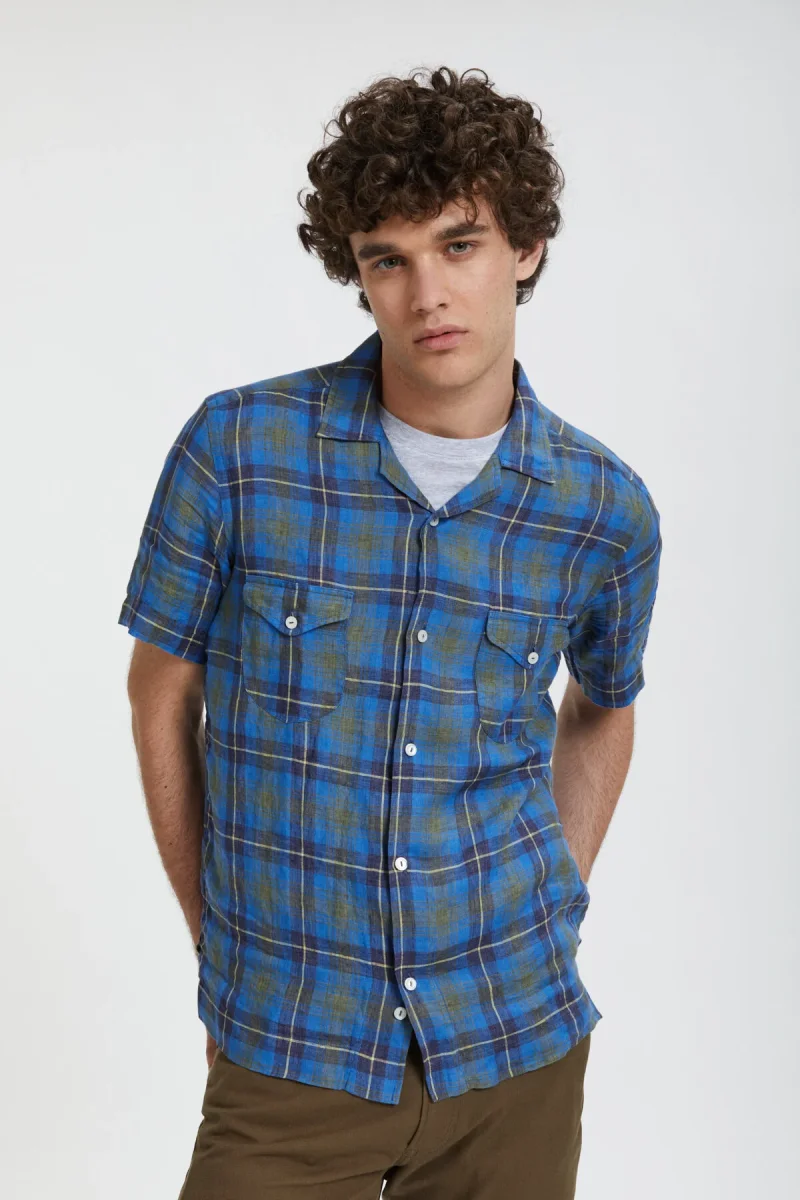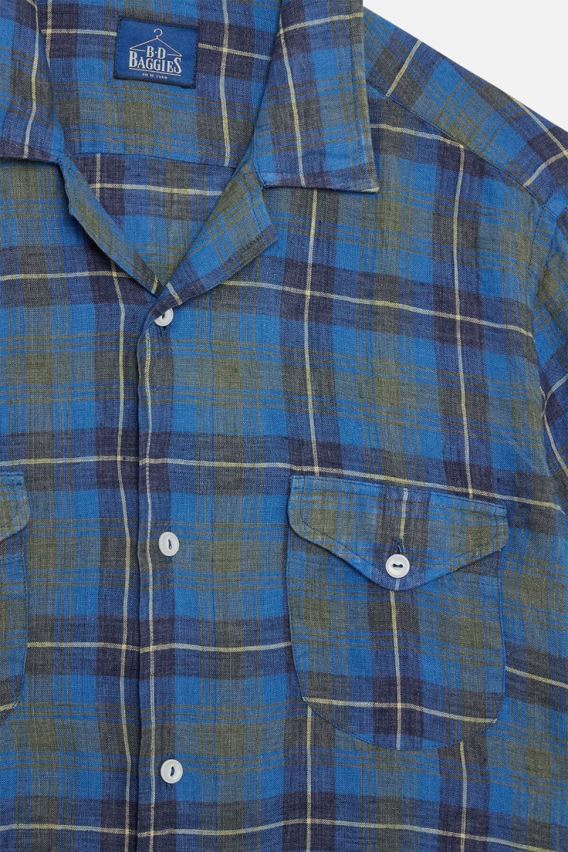 Camicia a maniche corte in leggero Madras, 100% lino. B.D. Baggies propone questa camicia dai colori vivaci e brillanti, in Madras, con dettagli curati, come il doppio taschino frontale con chiusura a bottone. Perfetta per l’estate, questa camicia a maniche corte è il tocco di American Style che stavi cercando.
