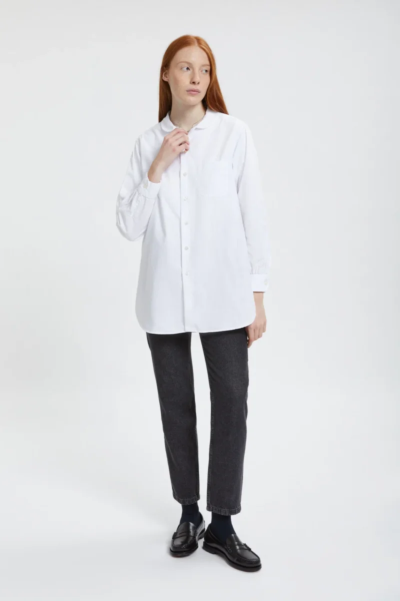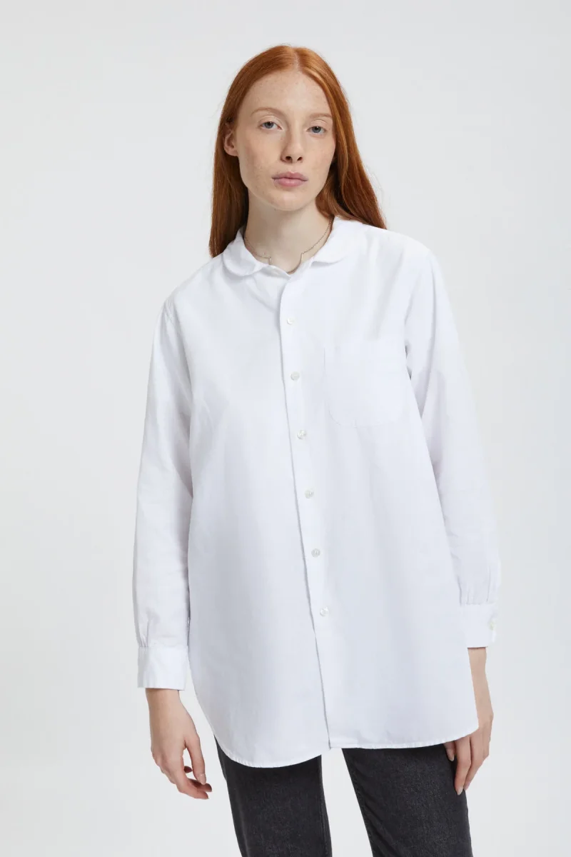 Un capo essenziale e minimalista: questa camicia di Engineered Garments è elegante e raffinata, dal fit oversize che le confersice un fascino contemporaneo e moderno. Il capo si caratterizza per i dettagli curati del colletto arrotondato e del taschino all’altezza del cuore. Realizzata al 100% in cotone.