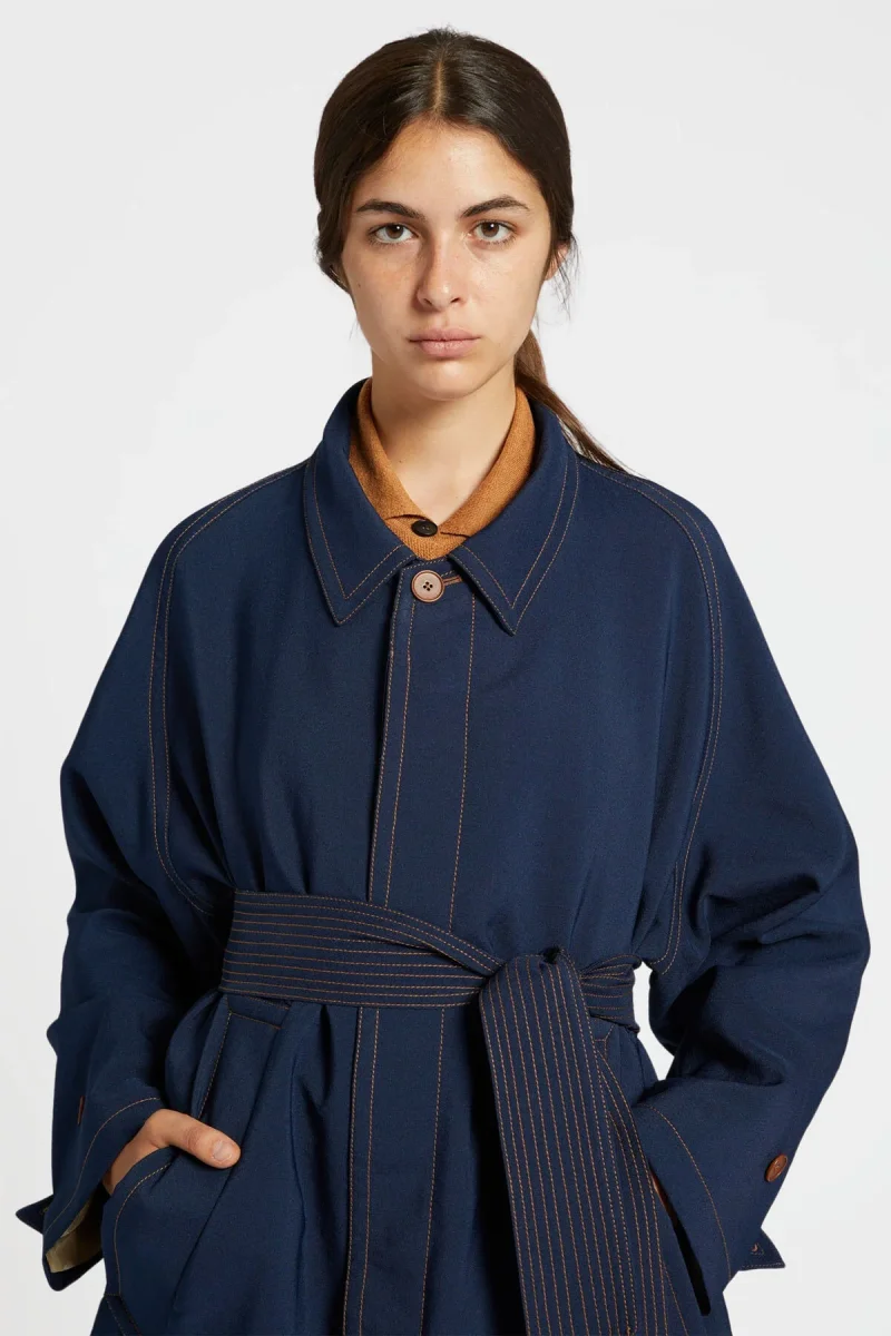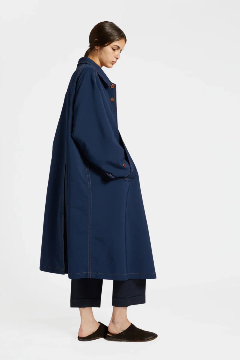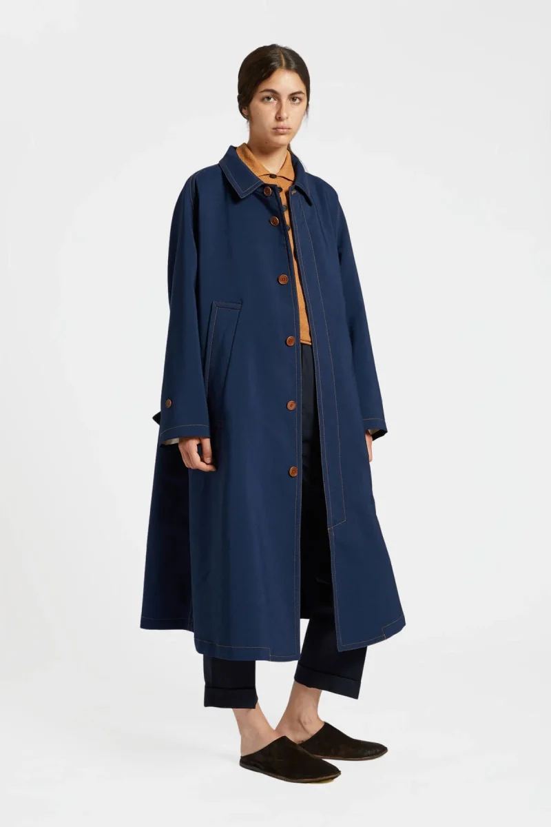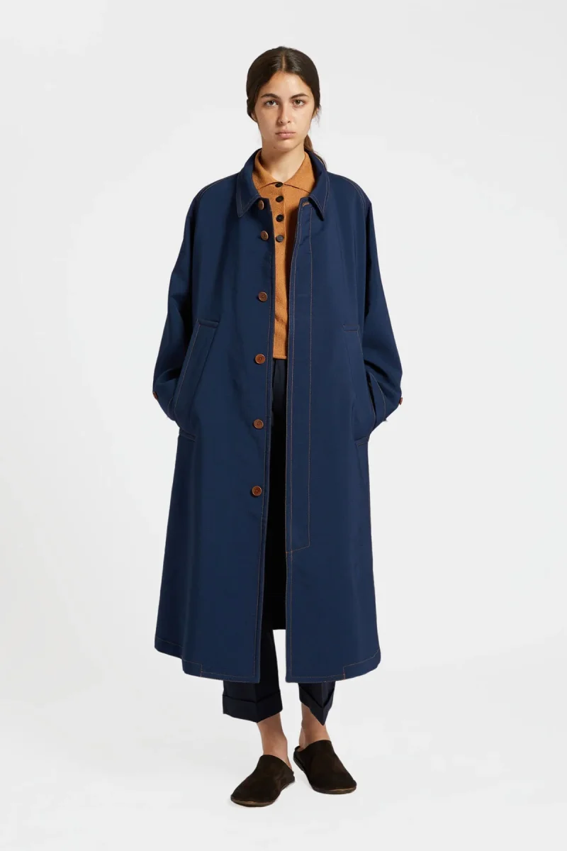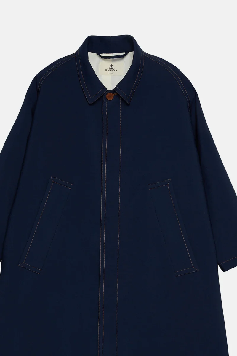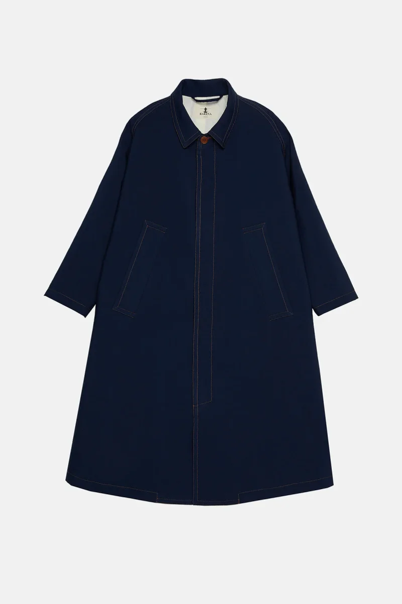 Intramontabile cappotto monopetto dal taglio dritto che cade morbidamente, di lunghezza media e caratterizzato da una cucitura a contrasto, collo aperto e tasca anteriore a filetto. La vestibilità comoda permette una facile stratificazione.