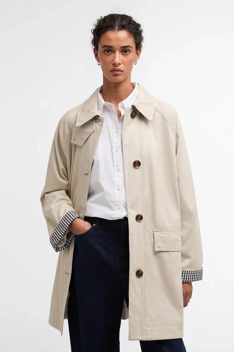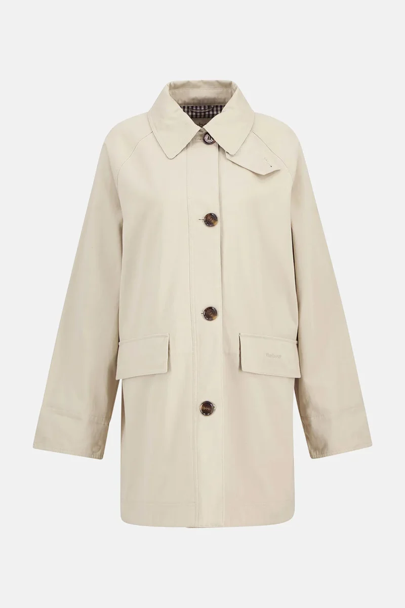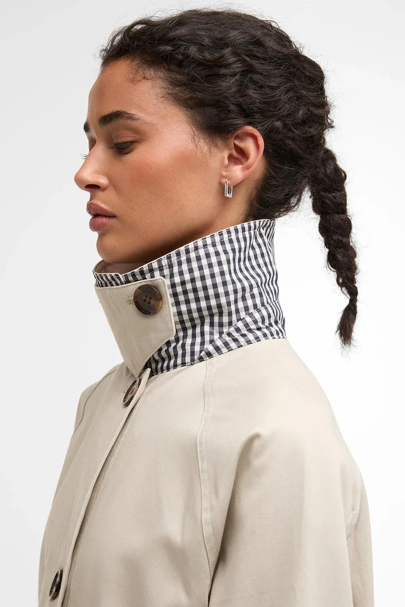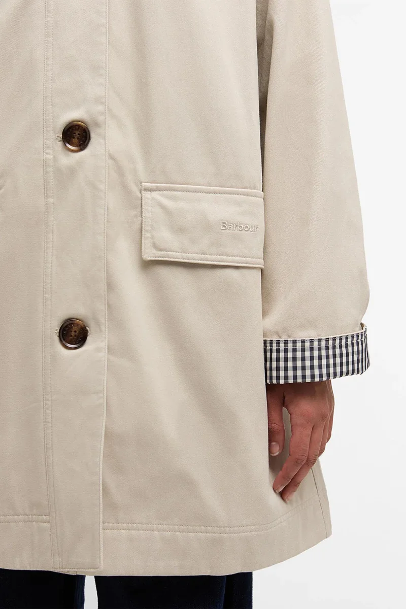 Il car coat Gabby di Barbour propone una rivisitazione in chiave contemporanea di un classico modello casual. Caratterizzato da finiture con bottoni in finto corno in basso al centro, sul davanti, e da pieghe sul retro, coniuga alla perfezione sartoria raffinata ed eleganza disinvolta. La silhouette con colletto e tasche con patta garantisce una praticità ottimale, mentre i dettagli a quadretti di stagione sulla fodera parziale posteriore e sui polsini conferiscono al capo l’inconfondibile tocco di Barbour. Versatile ed elegante, questo car coat è perfetto per sfoggiare ogni giorno un look disinvolto.