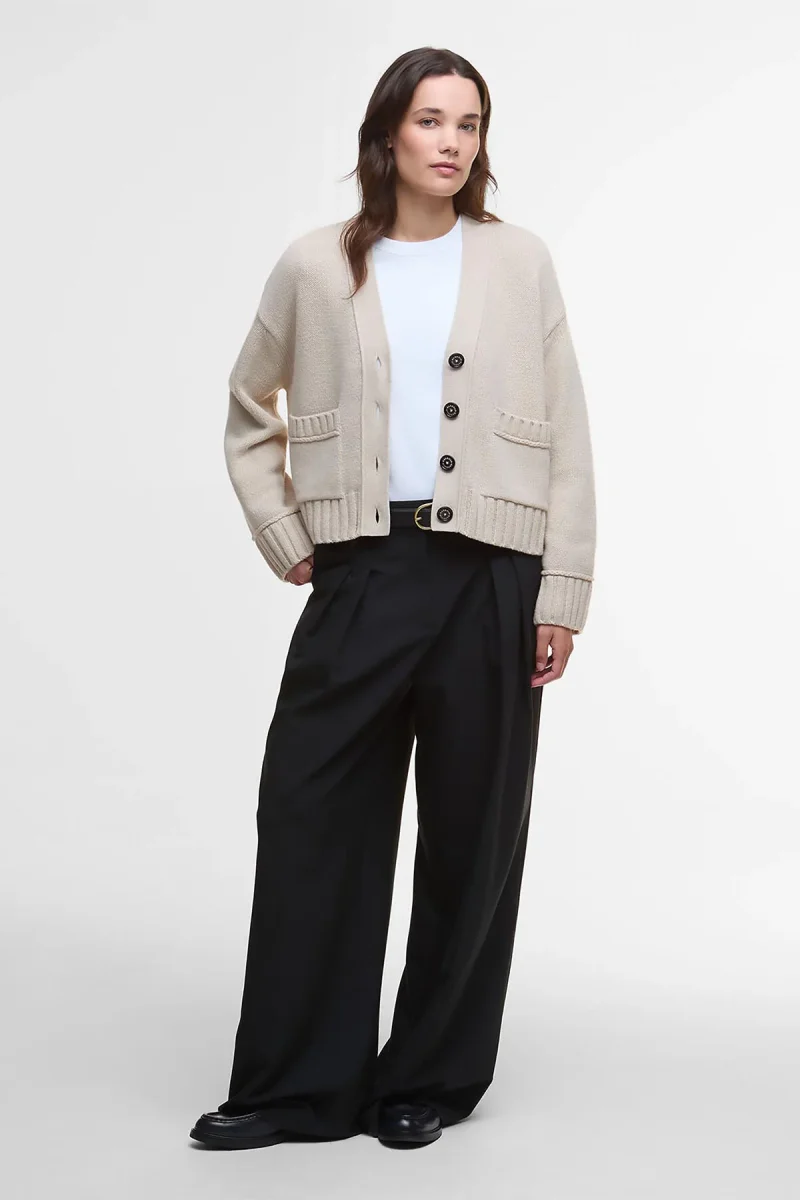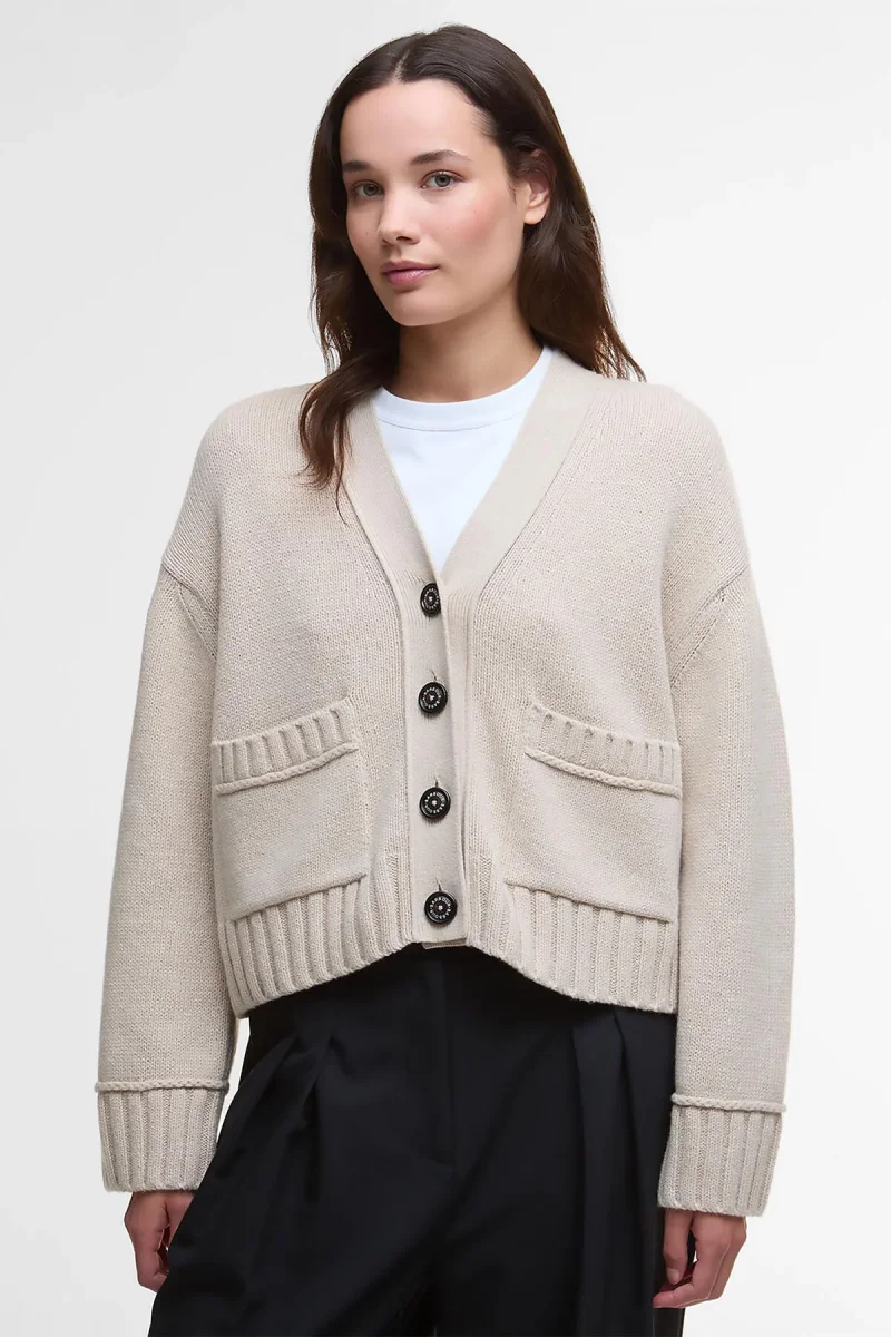 Lasciati avvolgere dal confortevole abbraccio del cardigan Faye firmato Barbour. Questo modello in misto lana con scollo a V è perfetto per creare look a strati grazie alla sua lavorazione a maglia spessa e alla sua vestibilità comoda. Caratterizzato da spalle scivolate e bottoni in finto corno logati, è la soluzione ideale per le fresche giornate di mezza stagione.
