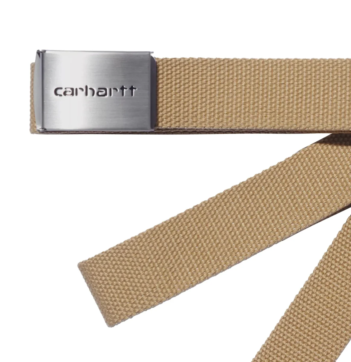 Carhartt WIP Clip Belt Chrome realizzata in canvas molto resistente e una fibbia in metallo con logo Carhartt inciso. Un accessorio perfetto da poter abbinare con il tuo prossimo pantalone Carhartt.