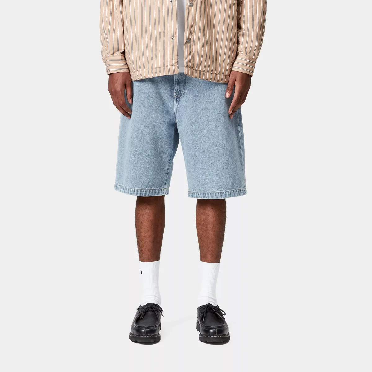 Workwear attitude, fit contemporaneo. I Carhartt WIP Landon Short reinterpretano il classico bermuda in denim con un taglio moderno e una costruzione robusta, fedele al DNA del brand. Realizzati in denim di cotone pesante con trama consistente, offrono una vestibilità ampia e una struttura resistente, ideale per un uso urbano e quotidiano. Dotati di tasche utility, cuciture rinforzate e label Carhartt in pelle sul retro, sono perfetti per chi cerca uno short in denim Carhartt da uomo dal look pulito ma con forte identità. Da indossare con t-shirt oversized, sneakers chunky o camicie workwear.