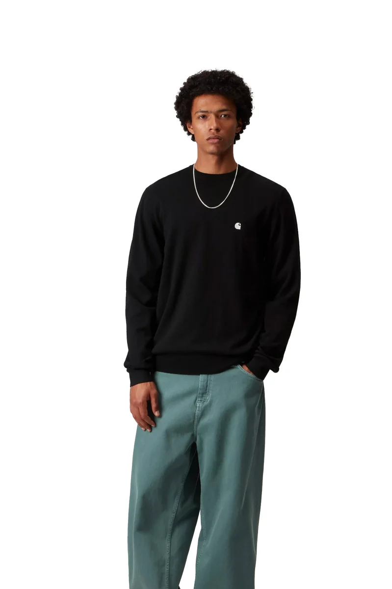 l Carhartt WIP Madison Sweater è un capo essenziale che unisce semplicità, qualità e stile senza tempo. Realizzato in morbido cotone di alta grammatura, offre una vestibilità confortevole e un look pulito, ideale per la stagione e per l’uso quotidiano. Il design classico con collo rotondo è impreziosito dal logo Carhartt WIP ricamato sul petto, dettaglio che richiama l’identità workwear del brand. Perfetto da abbinare a jeans, pantaloni cargo o camicie, il Madison Sweater rappresenta l’equilibrio perfetto tra eleganza casual e spirito street contemporaneo. Acquista il tuo Carhartt WIP Madison Sweater su 152 Store con spedizione veloce 24/48h e resi facili. SKU: I030841K02XX