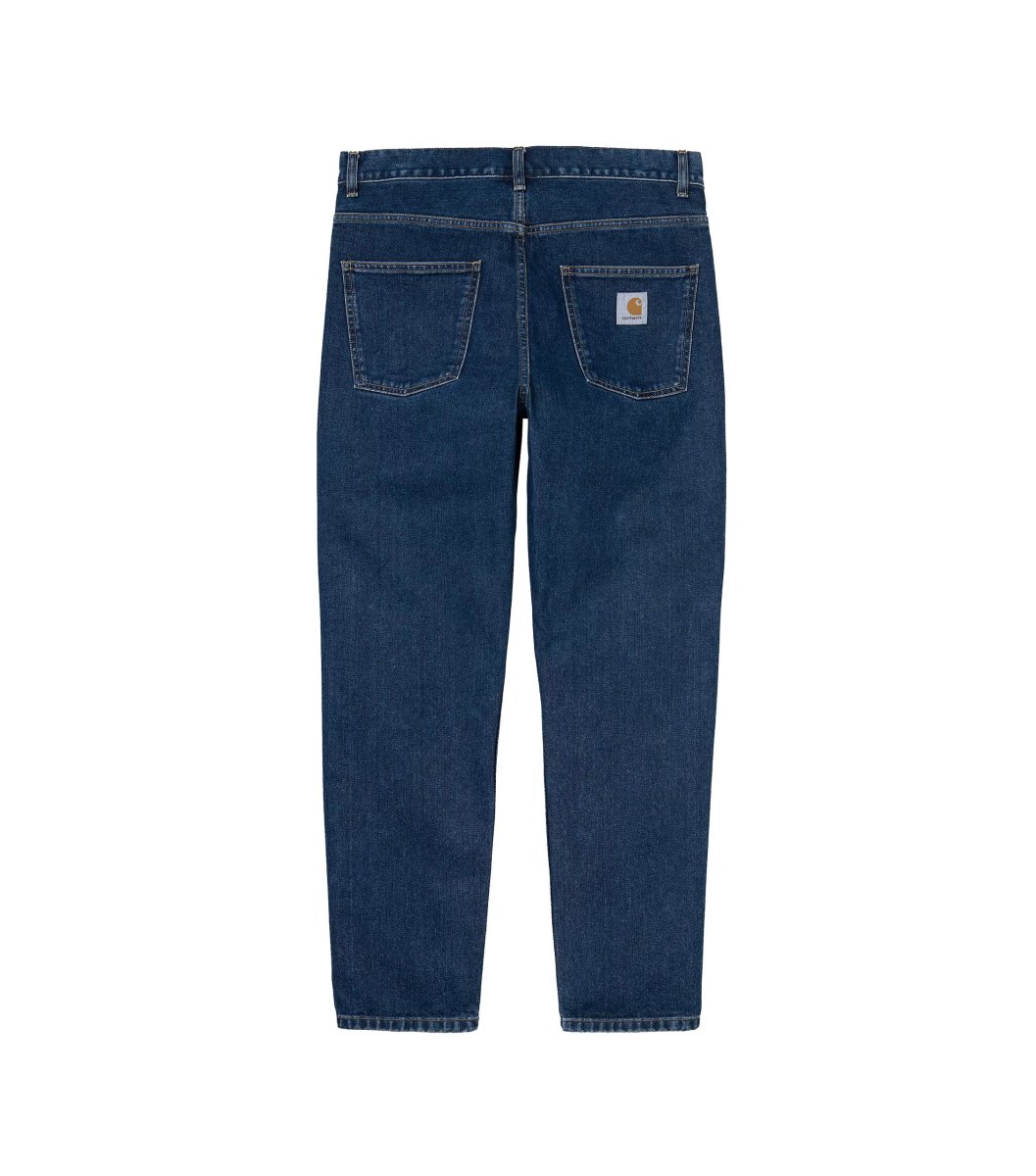 Carhartt Wip newel pant organic cotton maitland denim stone washed. Un classico jeans cinque tasche con relaxed fit e taglio stretto in fondo. I pantaloni Carhartt Wip newel pant sono realizzati con il denim maitland 100% biologico. Patch logo Carhartt ricamat sulla tasca.