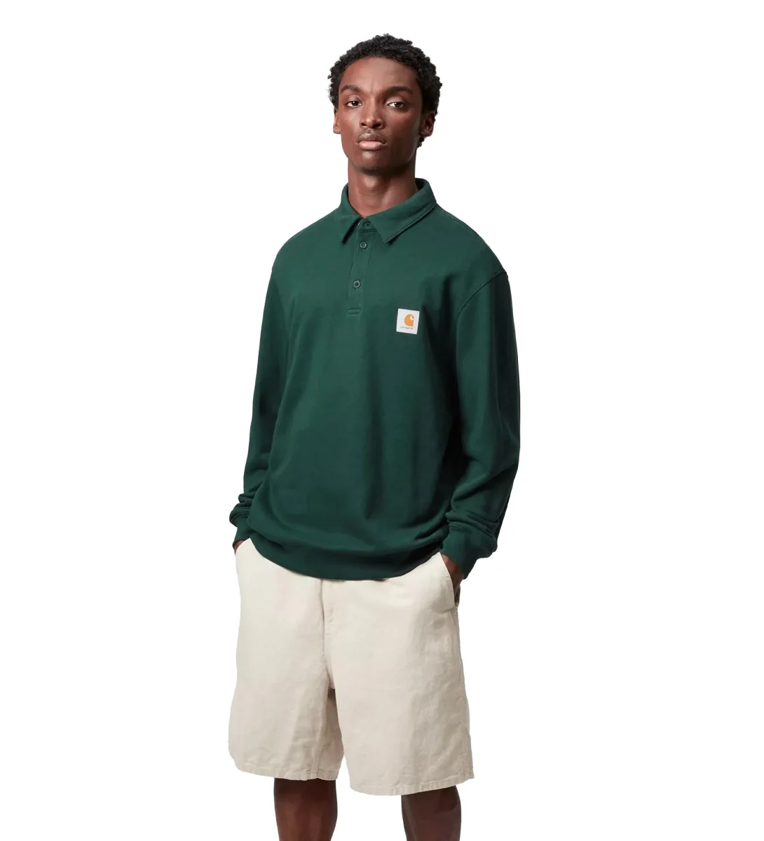 La Carhartt WIP Polo Sweatshirt è la fusione perfetta tra lo stile casual della polo e il comfort della felpa. Realizzata in cotone premium con vestibilità rilassata, presenta il colletto classico con bottoni e il discreto logo Carhartt WIP ricamato sul petto. Un capo versatile che aggiunge un tocco raffinato all’abbigliamento streetwear, ideale sia per il tempo libero che per look più curati. La texture morbida e resistente la rende una scelta smart per chi cerca una felpa Carhartt uomo/donna dallo stile intramontabile, perfetta da abbinare a jeans, cargo pants o pantaloni Carhartt WIP.