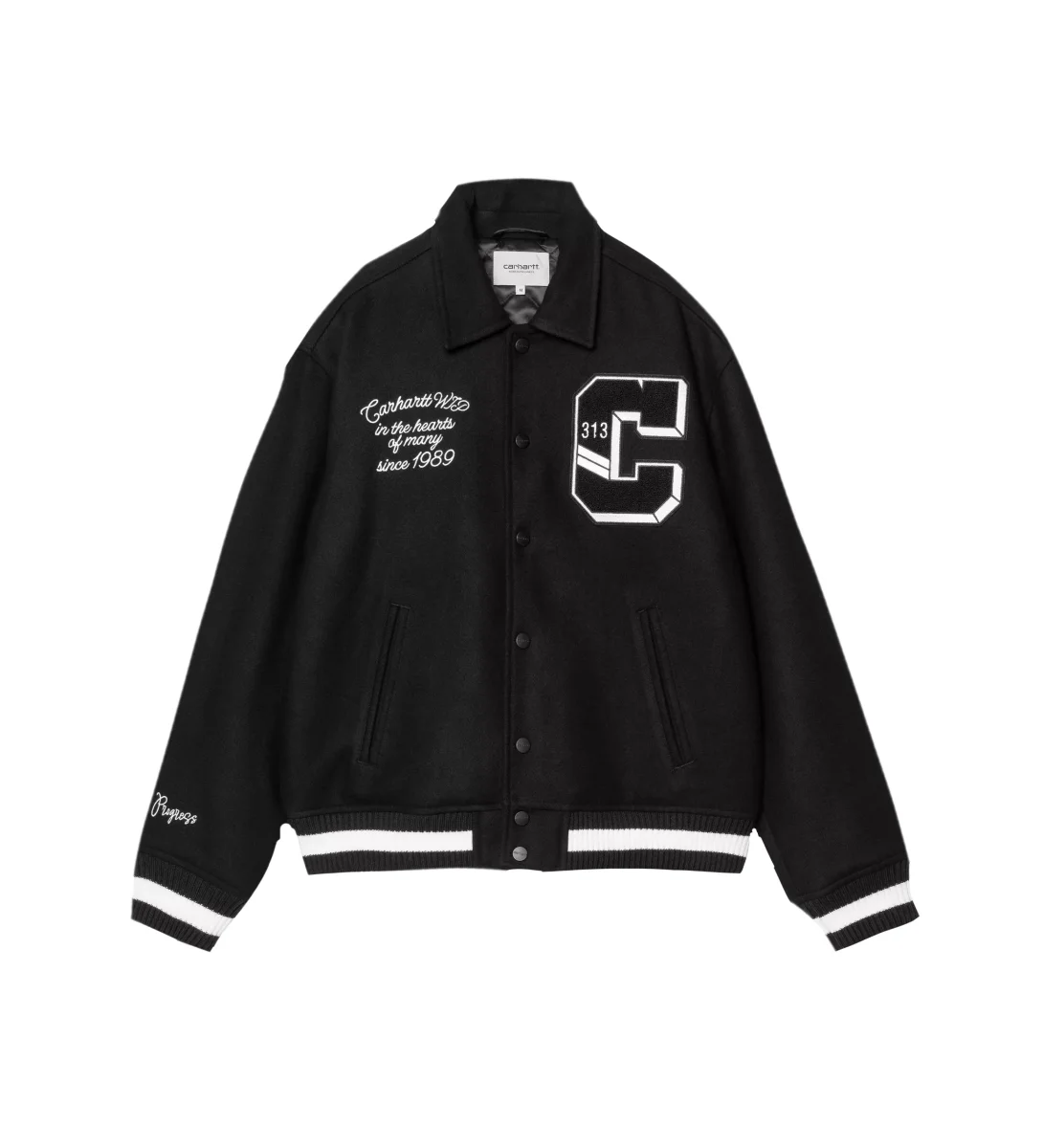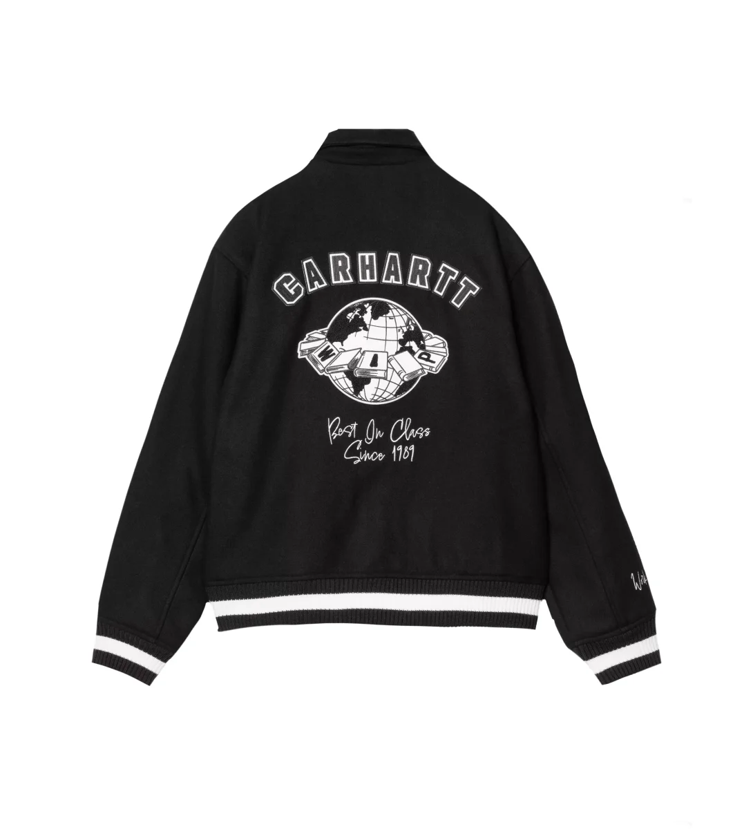 La Carhartt WIP World Class Varsity Jacket è una reinterpretazione moderna della classica giacca da college americana, realizzata in un mix di poliestere e lana per offrire calore, comfort e stile. Il design presenta maniche a contrasto, dettagli ricamati “World Class” sul petto e sul retro, chiusura con bottoni automatici e finiture a coste su colletto, polsini e fondo. La struttura robusta ma confortevole esprime perfettamente l’equilibrio tra estetica sportiva e attenzione ai dettagli che caratterizza Carhartt WIP. Ideale per completare look casual o streetwear, la World Class Varsity Jacket è un capo statement che unisce tradizione, qualità e personalità contemporanea. Acquista la tua Carhartt WIP World Class Varsity Jacket su 152 Store con spedizione veloce 24/48h e resi facili. SKU: I03543289XX