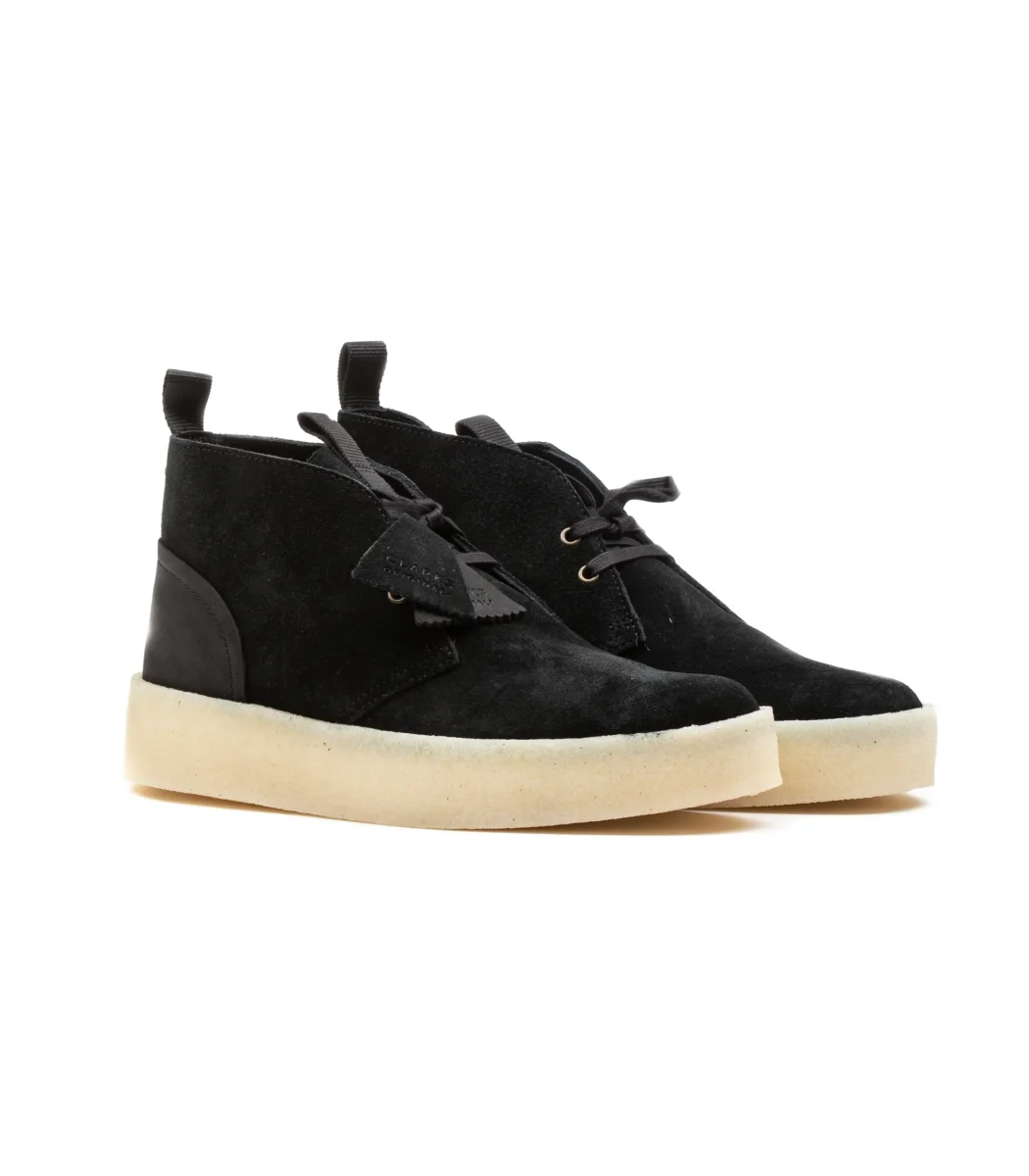 Clarks desert cup black suede da uomo linee semplici caratterizzano questo modello rafforzato dalla suola iconica e la pelle scamosciata.