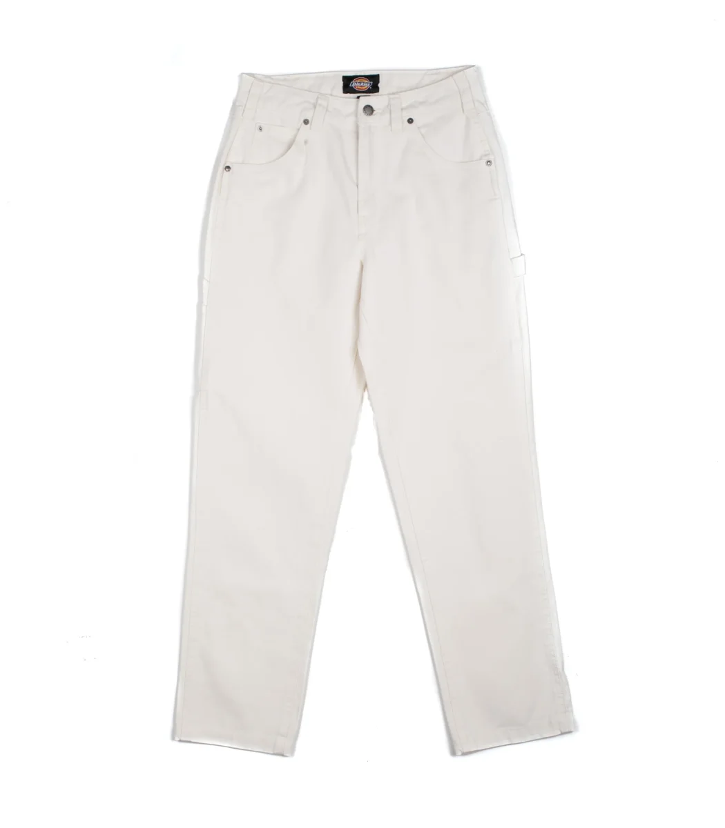Pantaloni Dickies dc carpenter colore bianco da donna con tasche front e retro comodo e versatile in qualsiasi occasione.