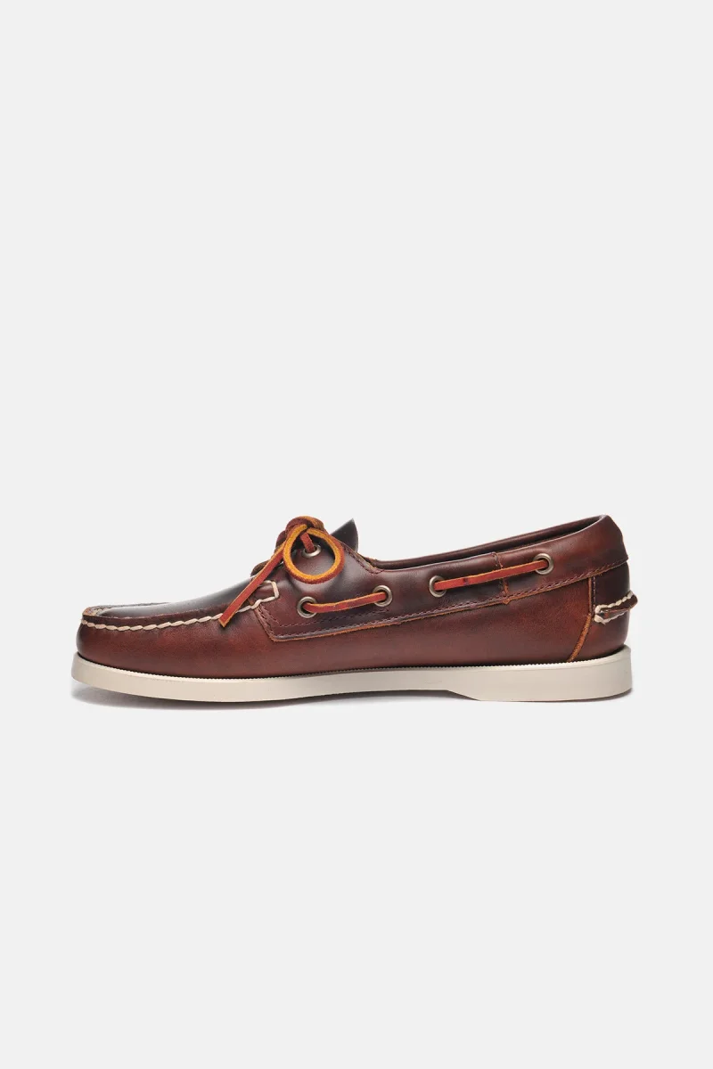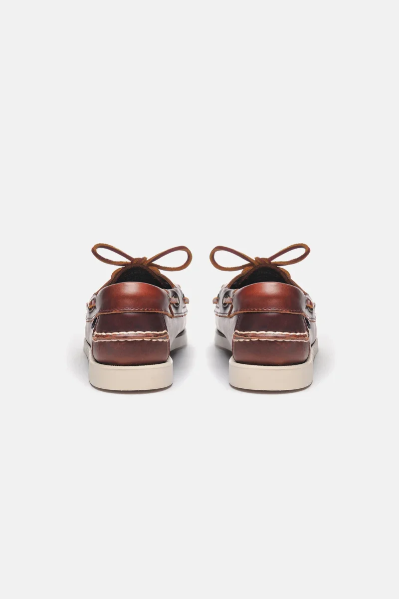 Perfetta come calzatura nautica, questa resistente scarpa da barca è stata realizzata con un unico pezzo in pelle conciata a caldo trattata con una ricca combinazione di olii e cere per donare una qualità naturale di lucidità e levigatezza, e successivamente cucita a mano con la migliore lavorazione artigianale. Soletta in pelle, sistema di allacciatura a 360° in cuoio e suola non-marking in gomma striata antiscivolo per offrire una presa stabile in tutte le condizioni atmosferiche. I mocassini “Portland” hanno nel loro stesso DNA un legame innato per la città di Portland, uno dei più grandi porti marittimi del New England.