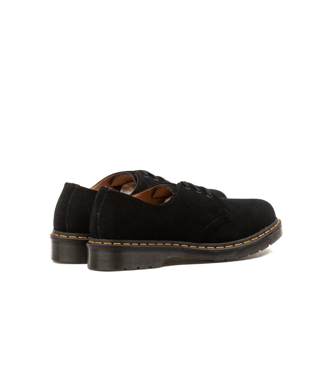 Scarpa Dr. Martens bassa colore nero da uomo un suede con suola in gomma e impuntura gialla a vista comoda ed elgante per il tuo look.