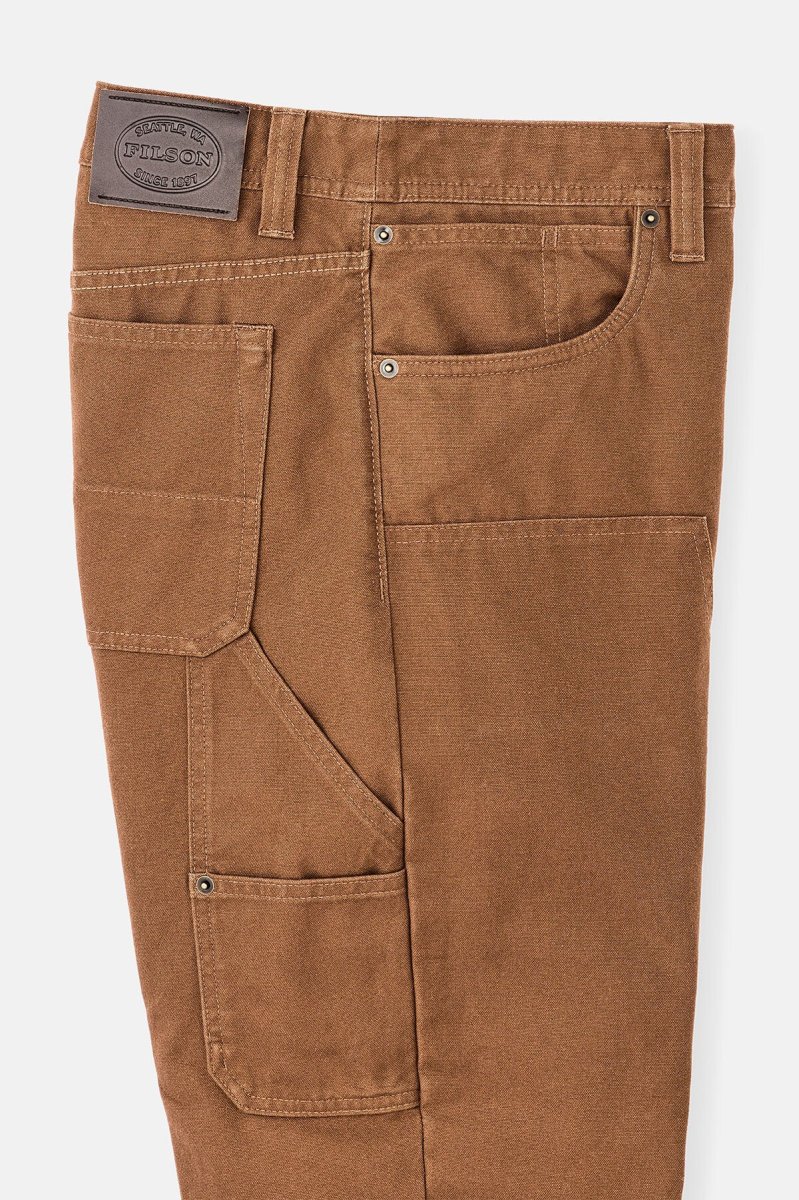 Questi pantaloni da lavoro sono realizzati nella versione non cerata del nostro iconico Tin Cloth. Questa tela a trama fitta ha saputo farsi notare per la durata superiore, guadagnandosi una solida reputazione in tal senso nei campi e nei cantieri del Pacifico nord-occidentale nell’arco di decenni. La parte anteriore della gamba è rinforzata con un secondo strato per una protezione extra. Le tasche e il passante per il martello ai lati delle gambe consentono di tenere gli attrezzi sempre a portata di mano. Tasche rinforzate a doppio strato. Vita con zip e bottone con gambo in metallo.