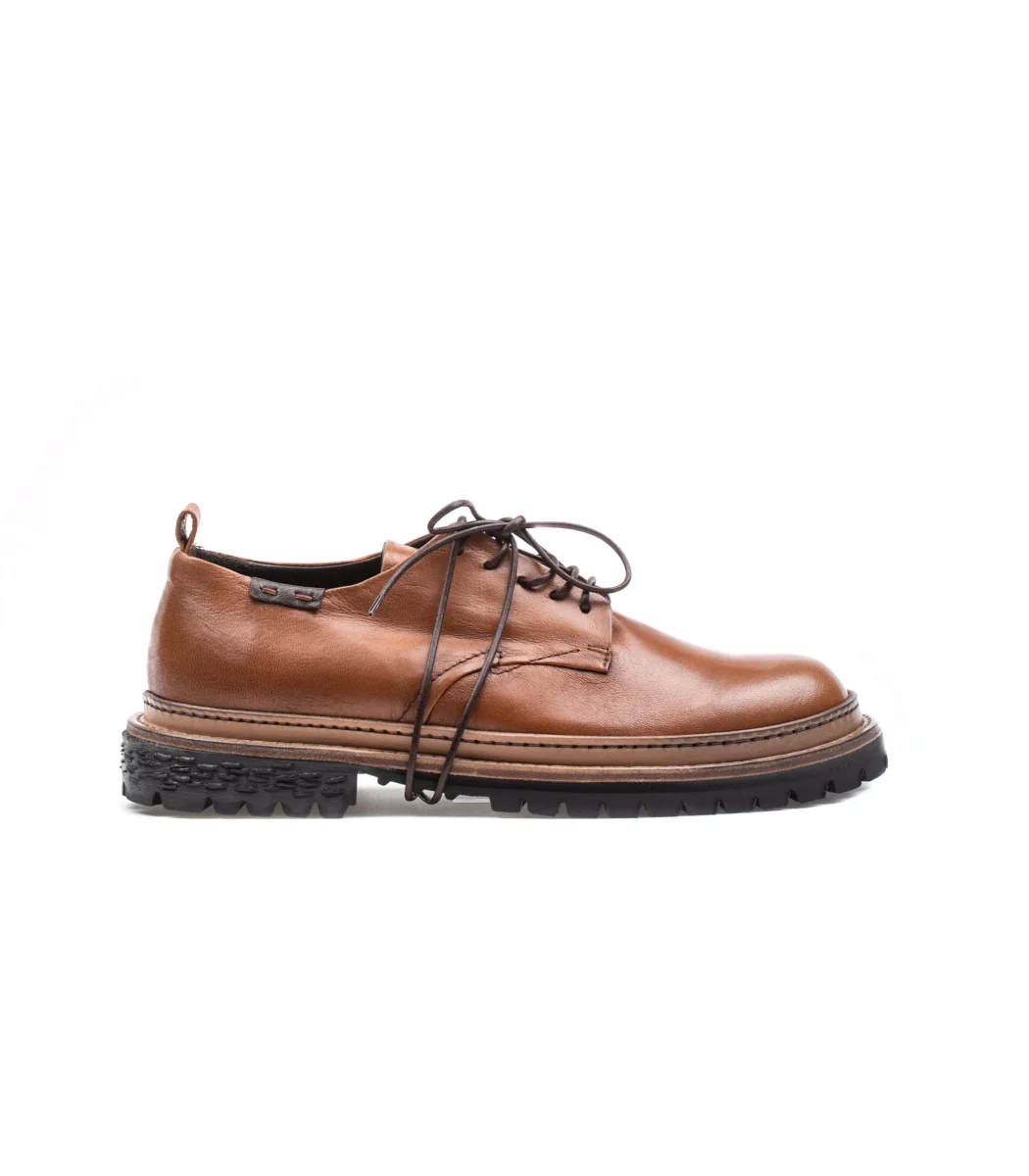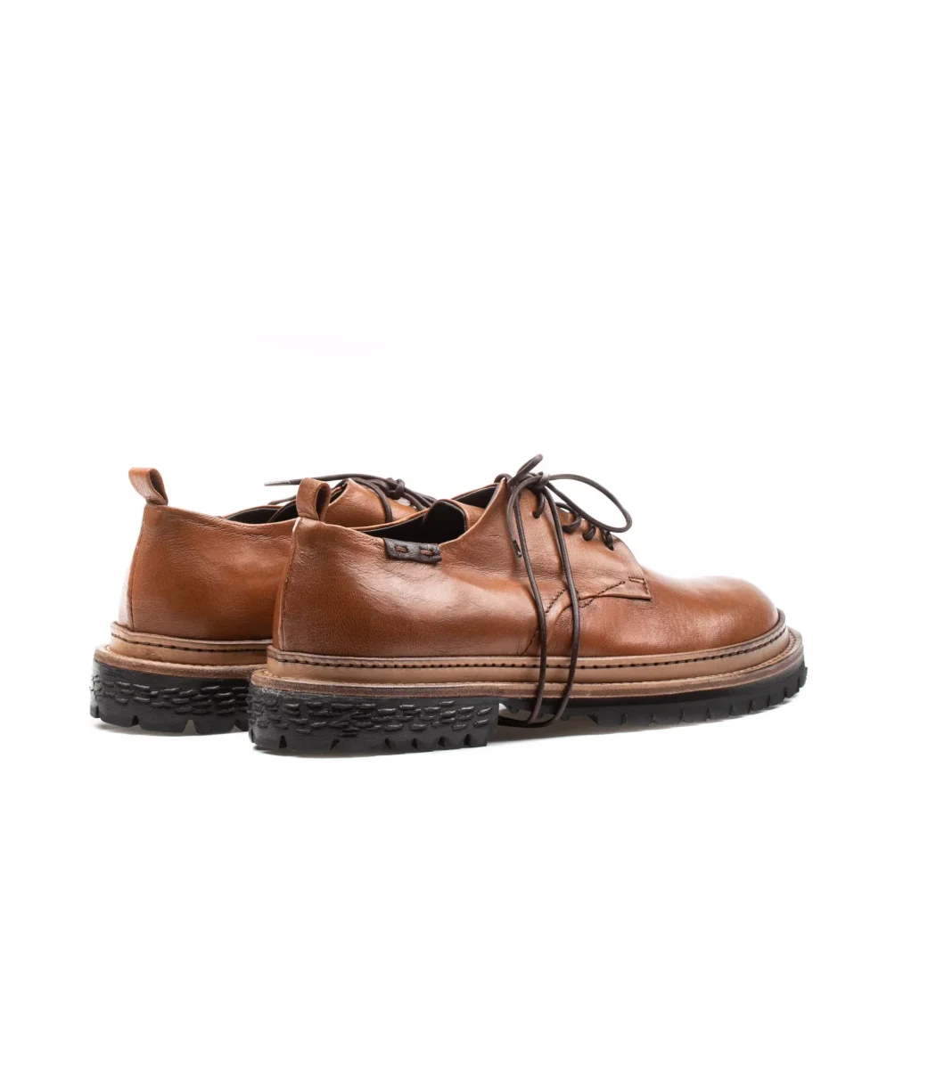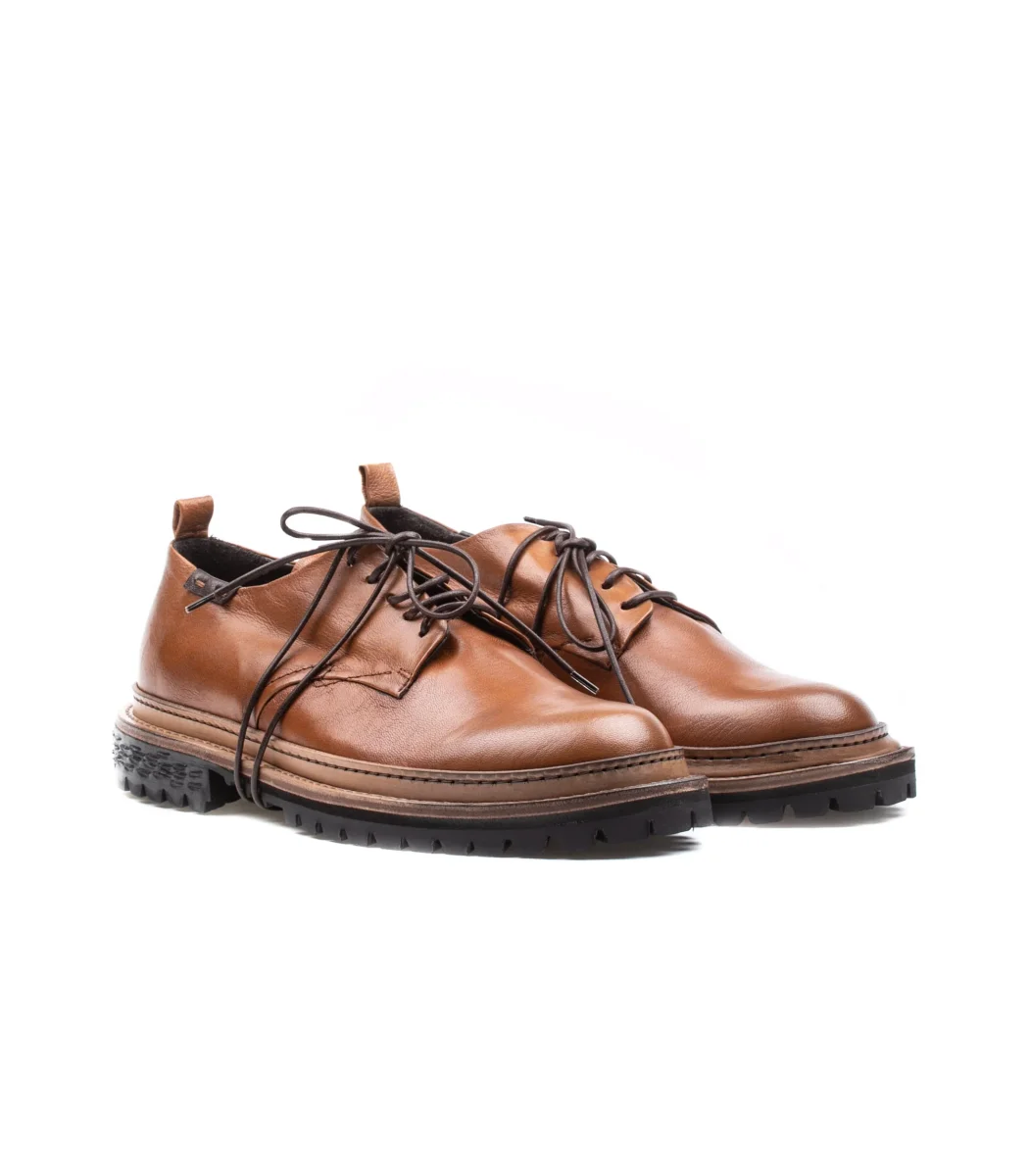 Scarpa Ernesto Dolani colore cognac da uomo con suola rialzata in gomma tomaia in pelle di alta qualità e lacci a vista che avvolgono la scarpa per un look contempraneo ed elegante.