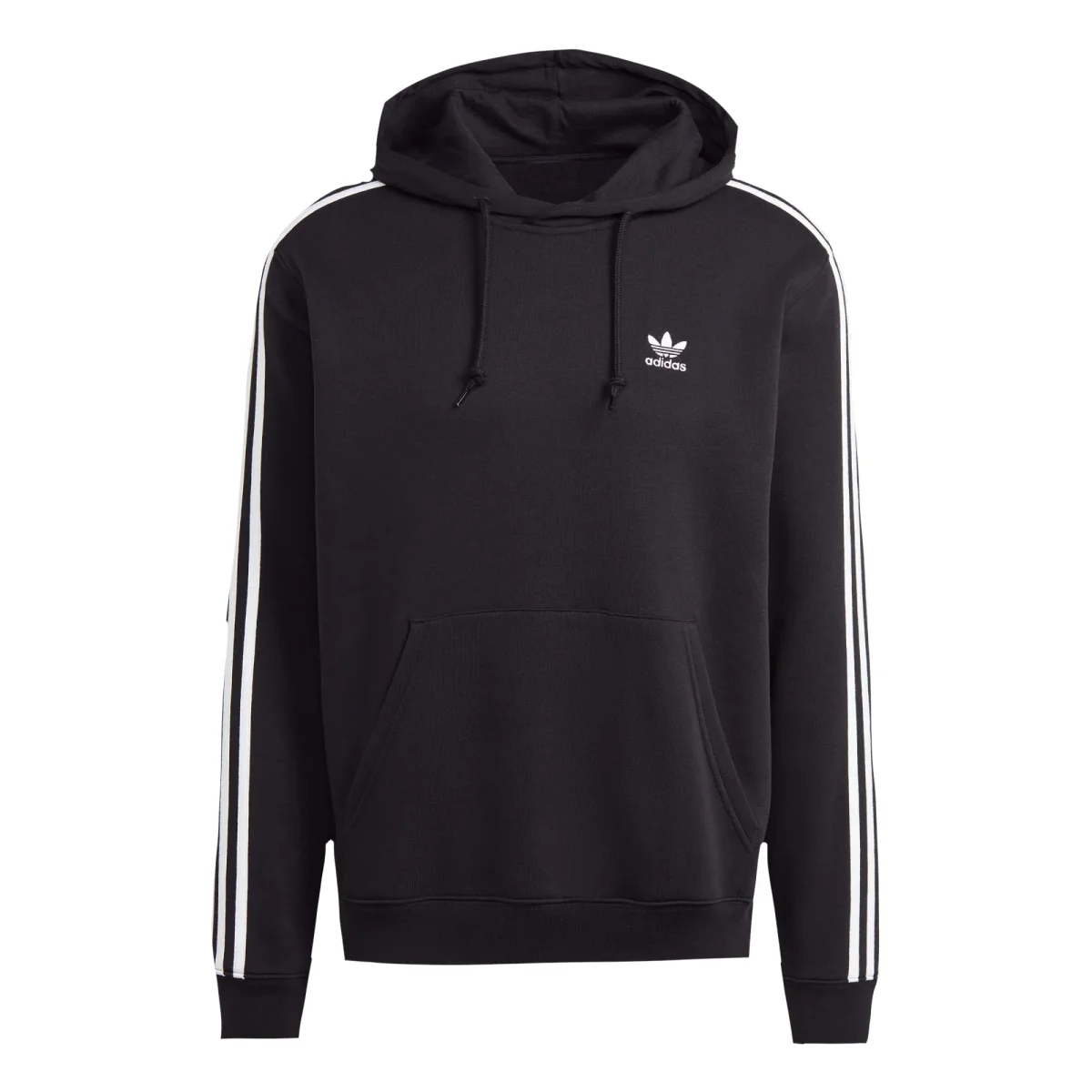 La classica e storica felpa Adidas con le tre strisce bianche nelle maniche. Colore nero.