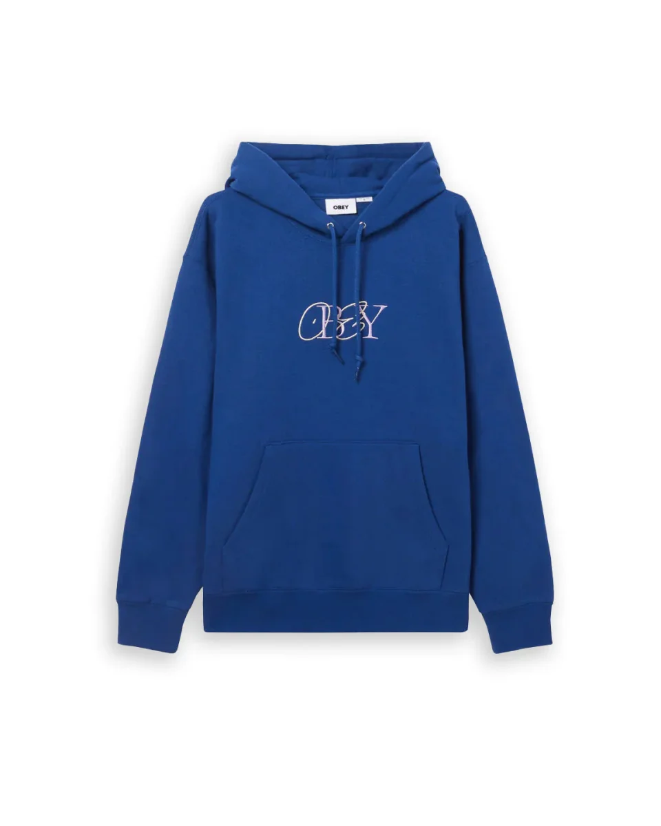 Felpa cappuccio Obey modello nova hood fleece colore blu con logo frontale cappuccio regolabile cotone morbido vestibilità regolare.