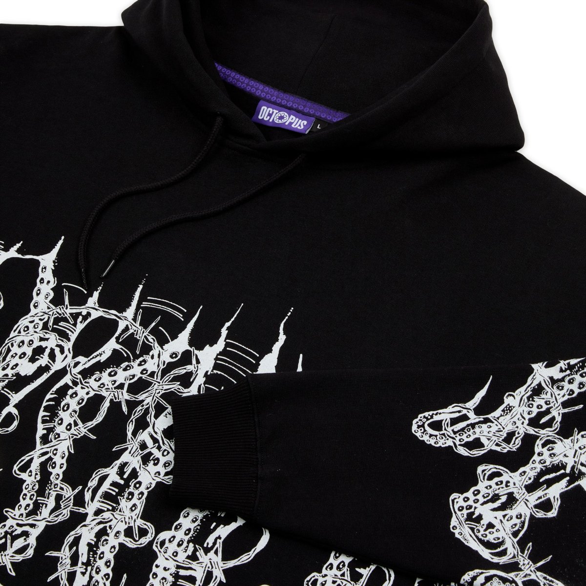 Felpa cappuccio Octopus con stampa tentacoli front e retro colore nero. Grafica by Giorgio Di Salvo cappuccio regolabile 100% cotton Made in Italy.