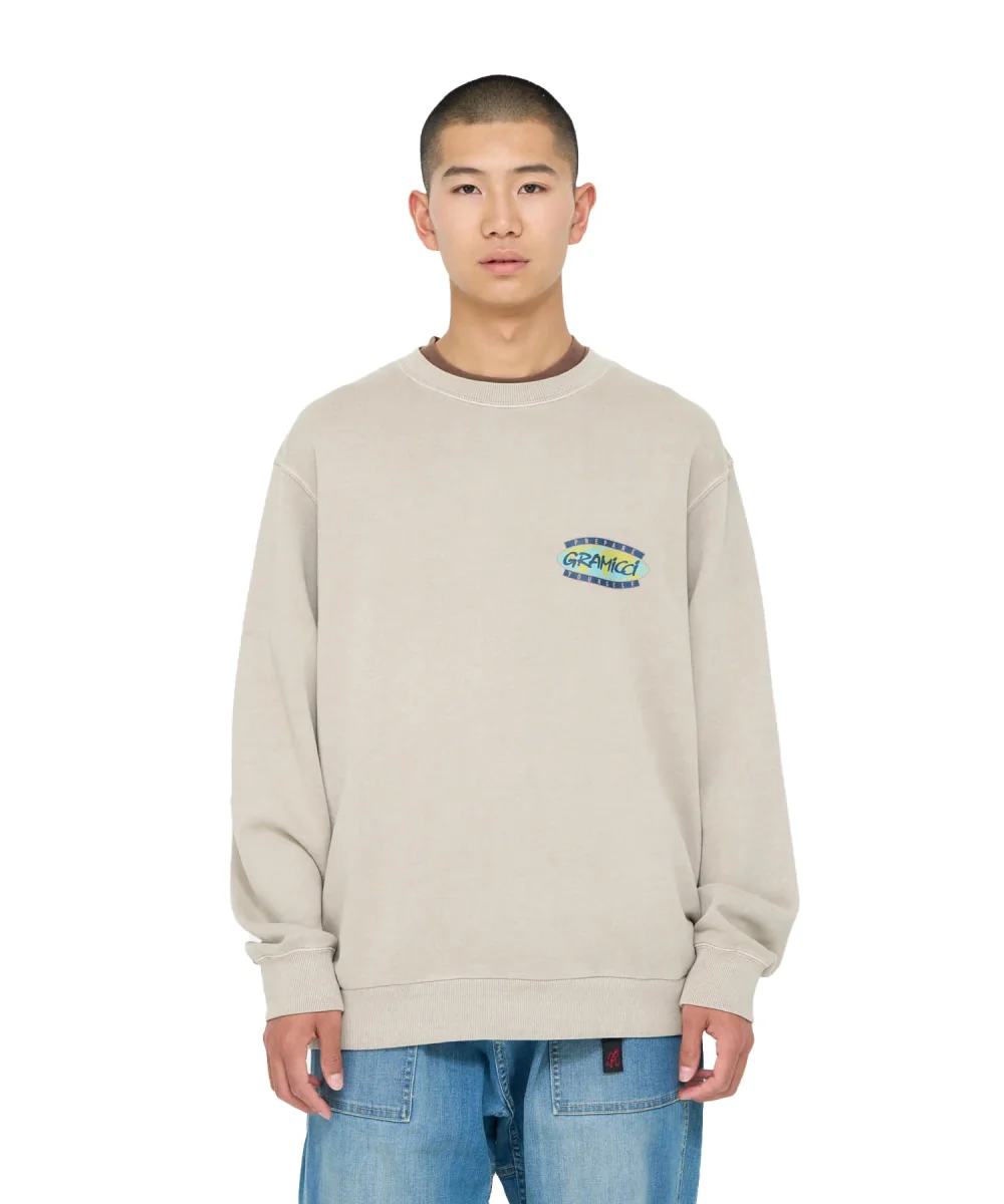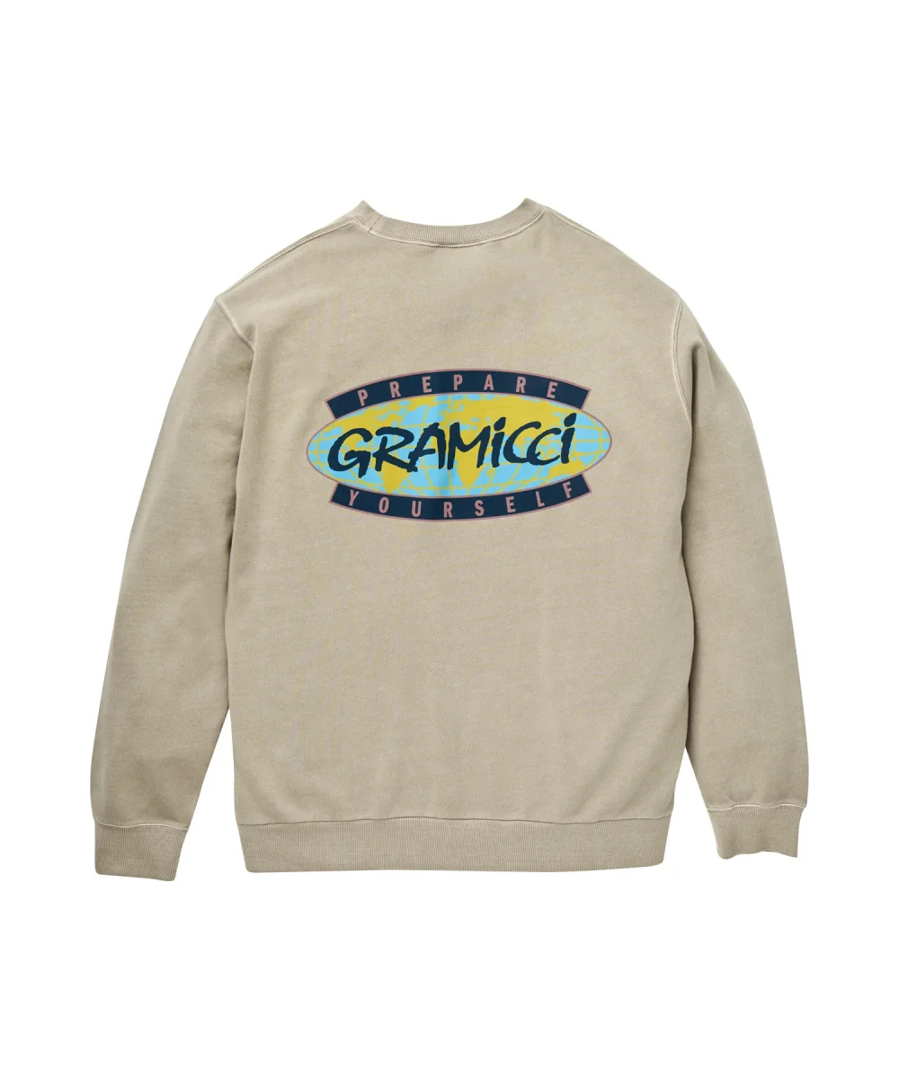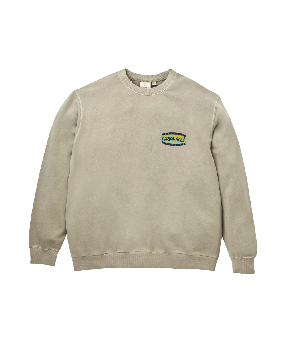 Felpa girocollo Gramicci modello prepare yourself colore beige con stampa front e retro multicolor cotone morbido. Taglie del sito in scala Asia vestibilità europea Carhartt.