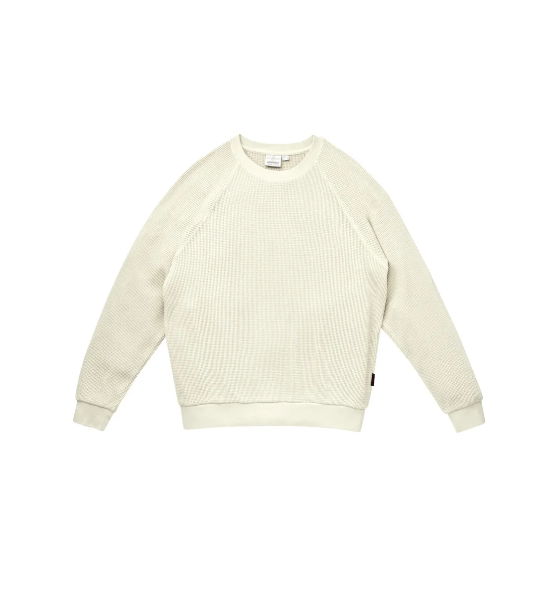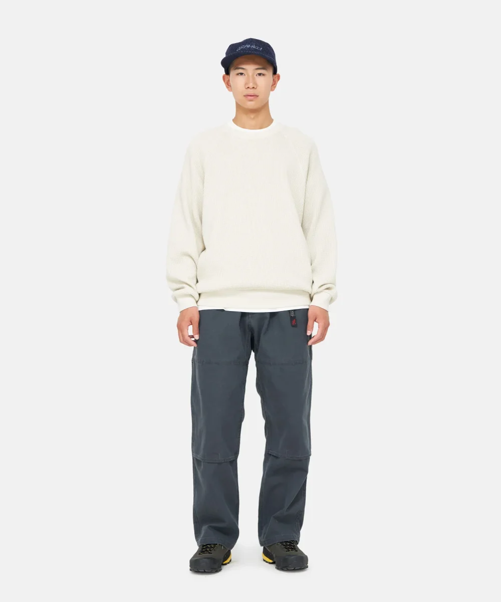 Felpa girocollo Gramicci modello waffle crew colore latte iconico tessuto del brand tecnico. Taglie del sito in scala Asia vestibilità europea Carhartt.