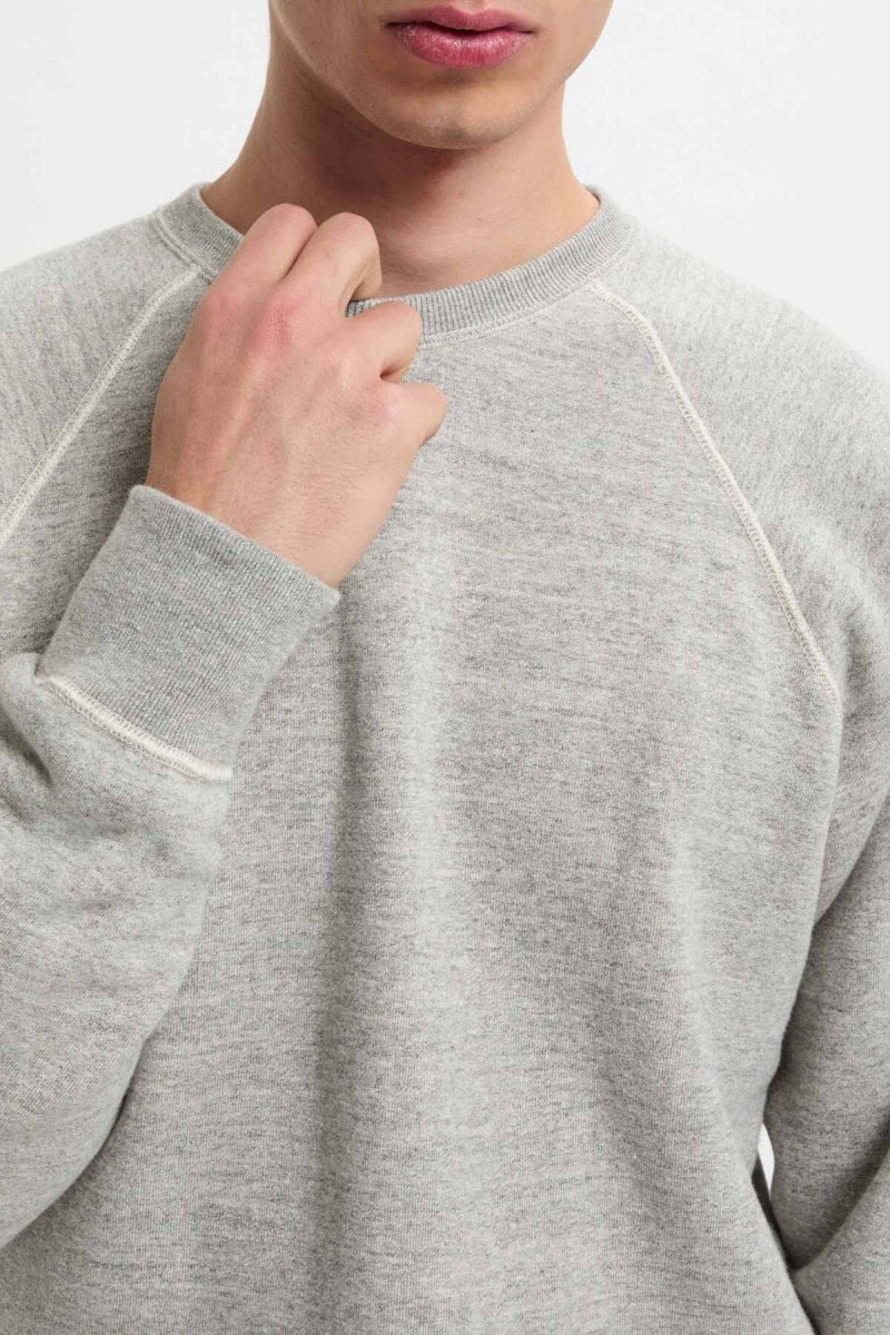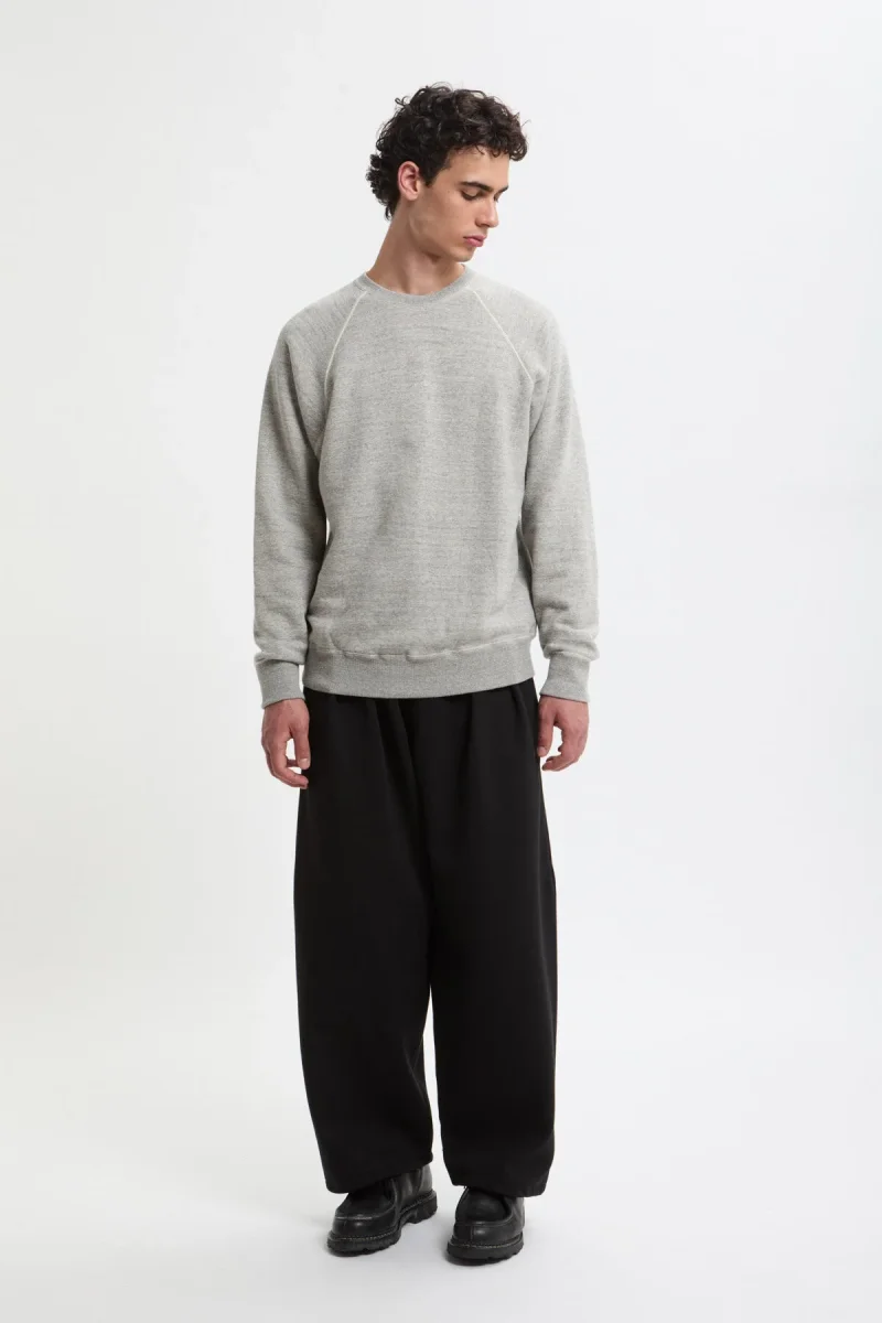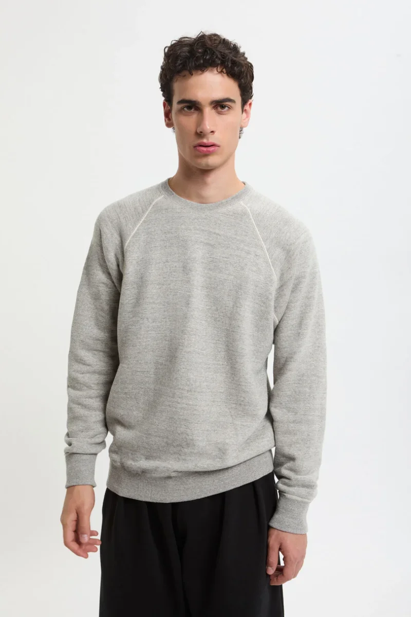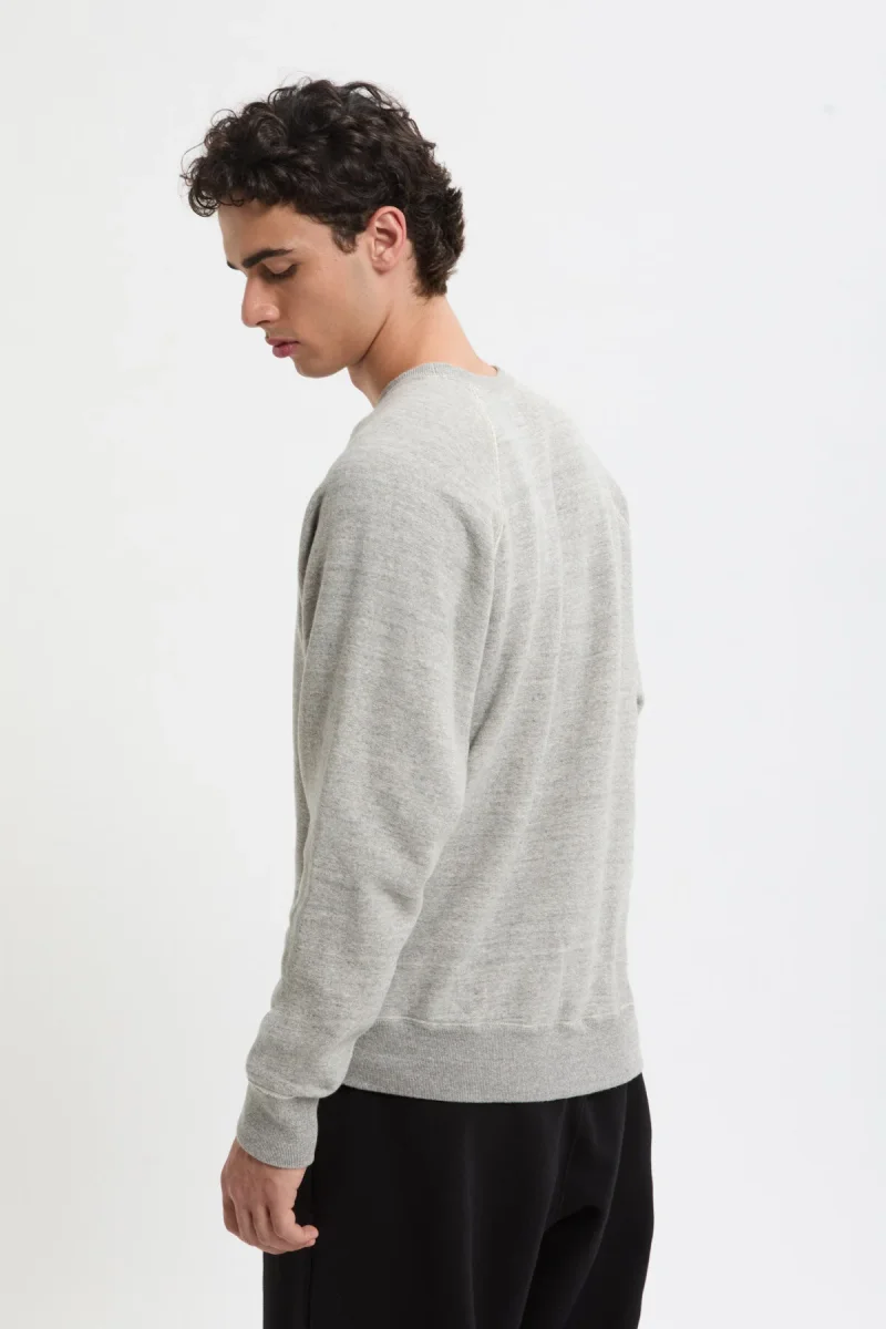 Presentiamo la felpa girocollo realizzata con un tessuto lavorato su una macchina per maglieria circolare. A causa delle caratteristiche tecniche di questo macchinario, è possibile produrre solo una quantità limitata di tessuto al giorno. Lavorando con cura, lentamente e con attenzione, realizziamo ogni capo con un processo artigianale che conferisce una texture unica e una sensazione morbida e confortevole sulla pelle.