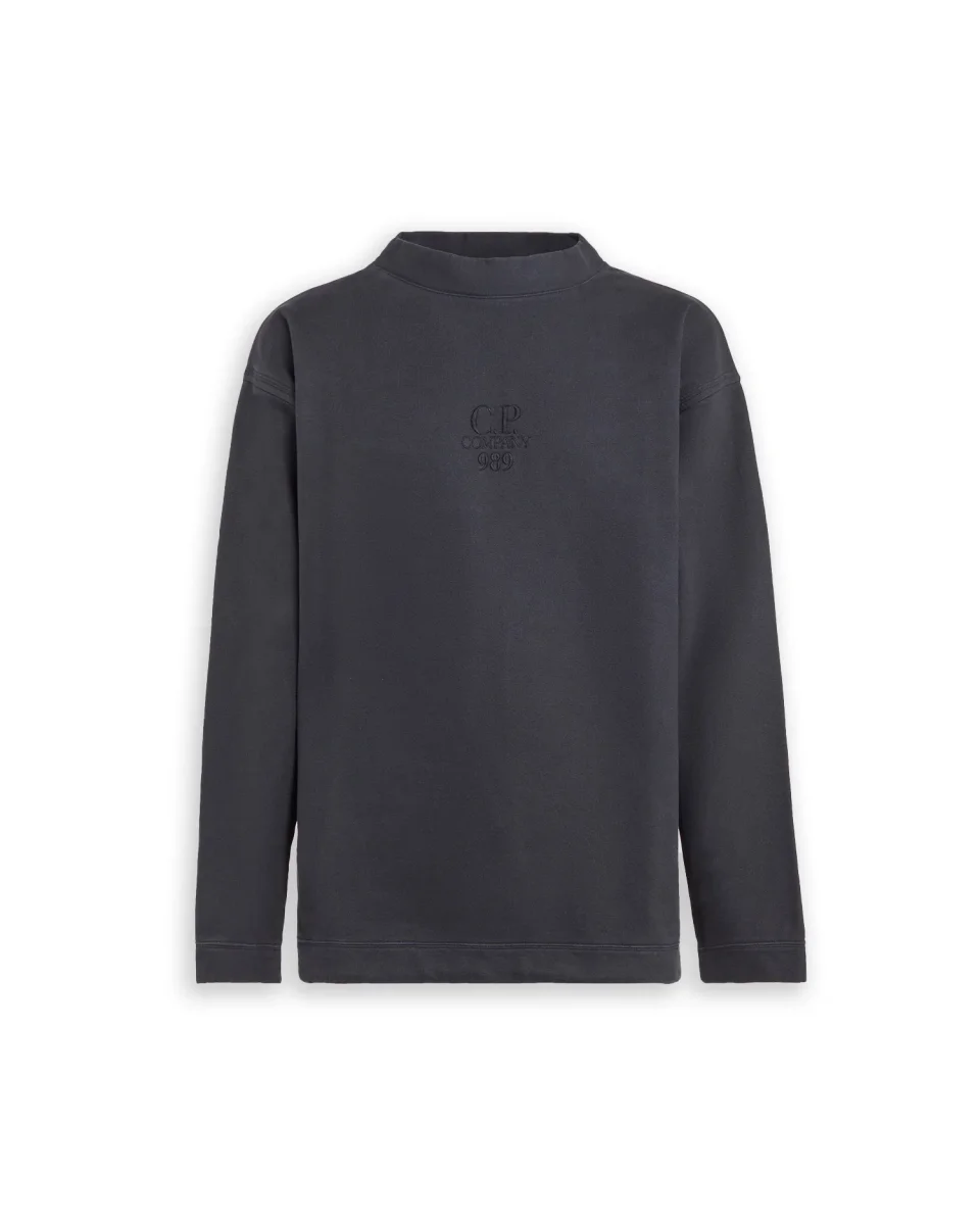 Felpa girocollo C.P. Company colore nero da uomo in morbido cotone flessibile. Dettaglio logo ricamato frontale. Vestibilità over.
