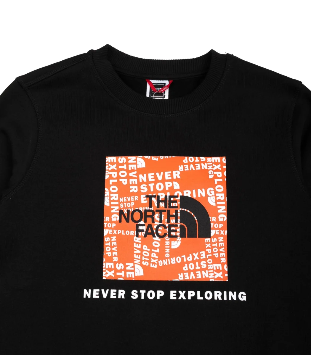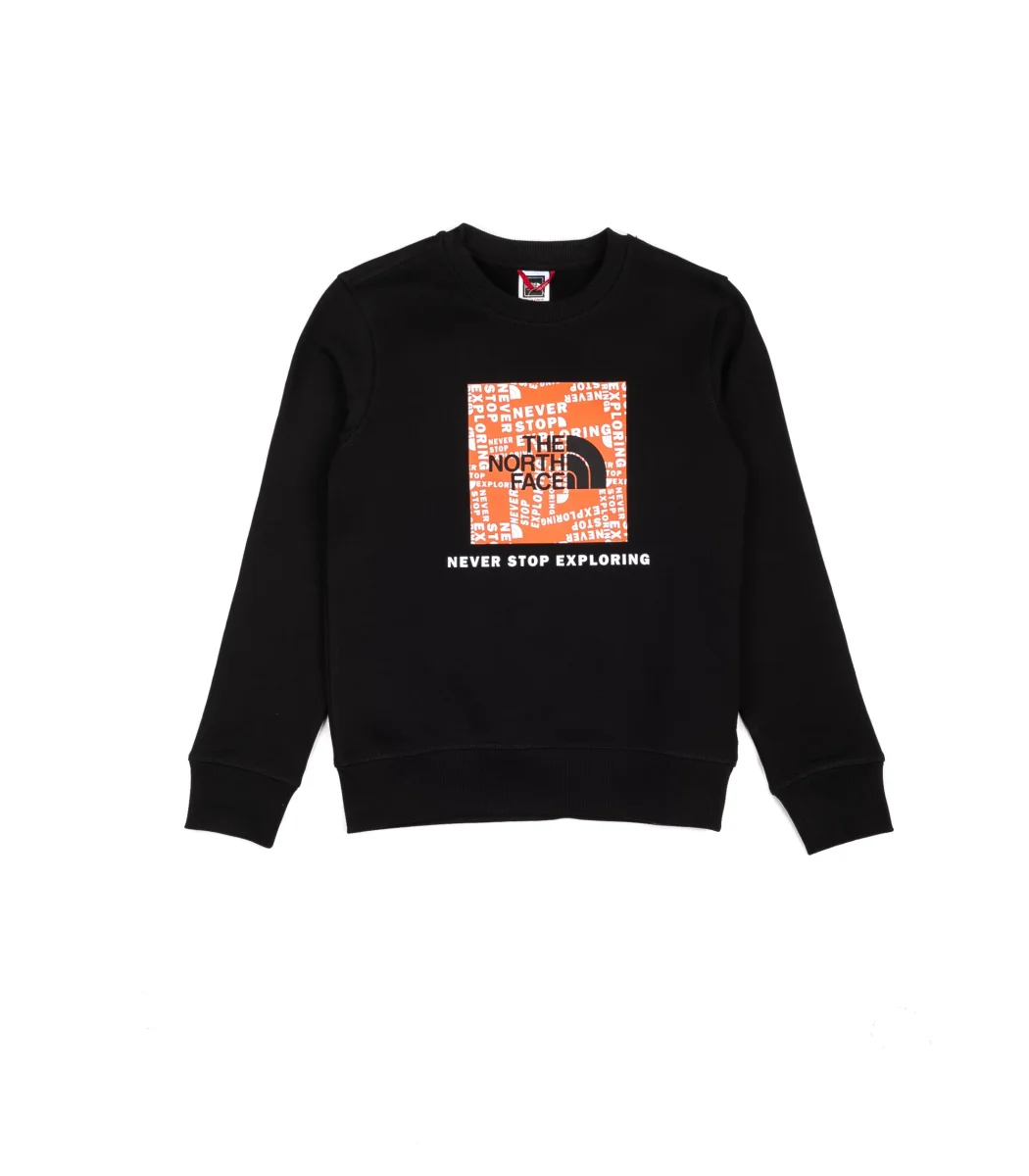 Felpa girocollo The North Face con box logo frontale colore nero da bambino cotone morbido vestibilità regolare.