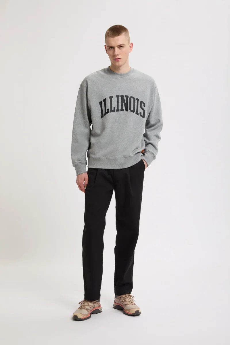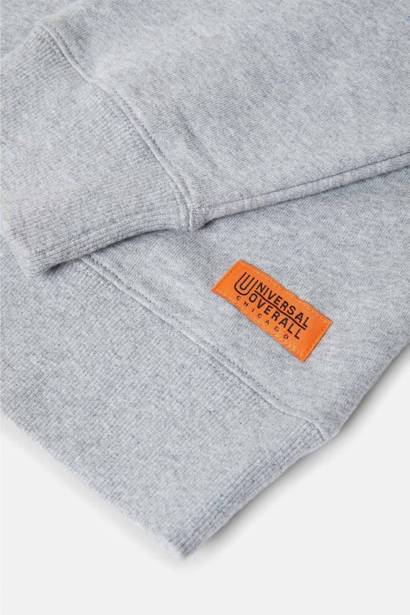Una felpa basic realizzata in tessuto felpato CVC (Chief Value Cotton) di alta qualità, ad alto contenuto di cotone. Mantiene la morbida e naturale texture del cotone, offrendo al tempo stesso la resistenza e le proprietà di asciugatura rapida del poliestere. Progettata con una vestibilità leggermente rilassata, è un capo versatile adatto a un’ampia fascia di età. Sul davanti presenta un logo in stile college che richiama l’Illinois, luogo di nascita di UNIVERSAL OVERALL, aggiungendo un tocco di ispirazione heritage al design.