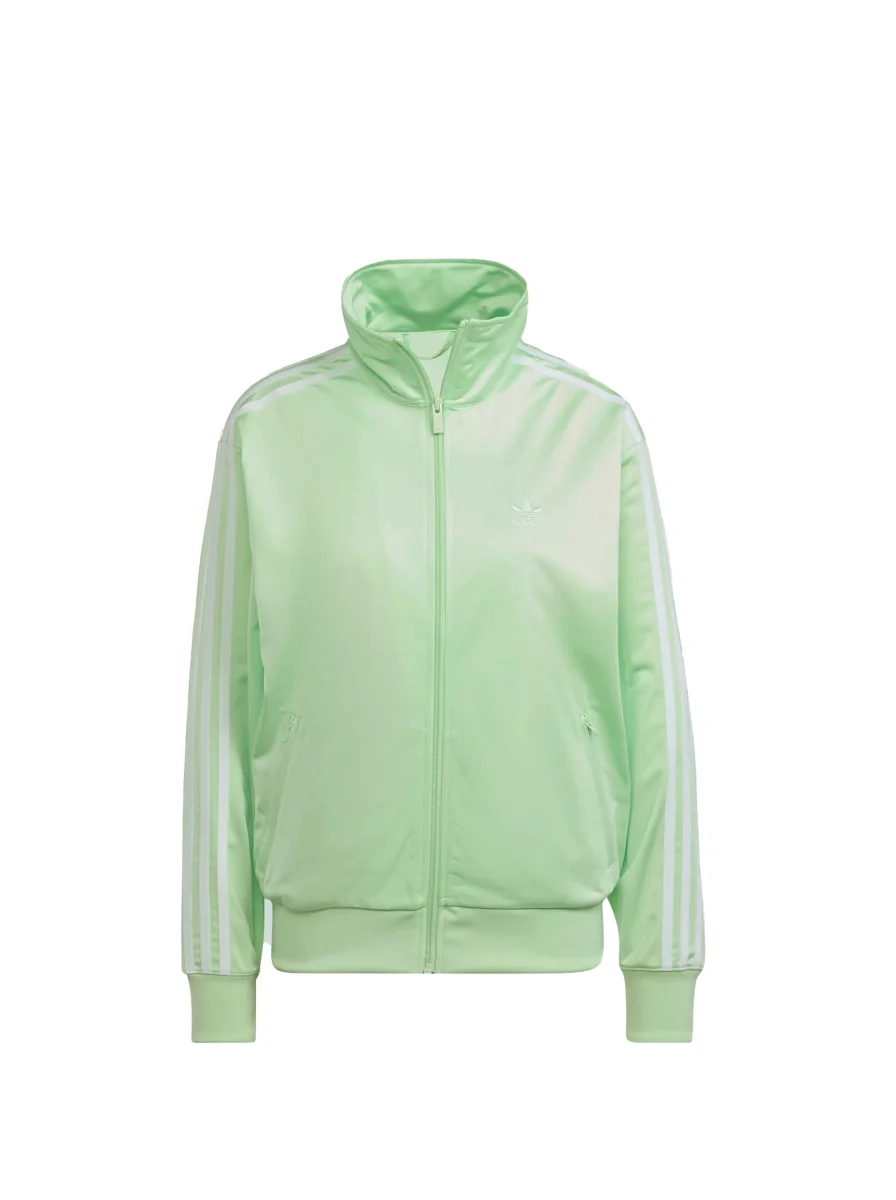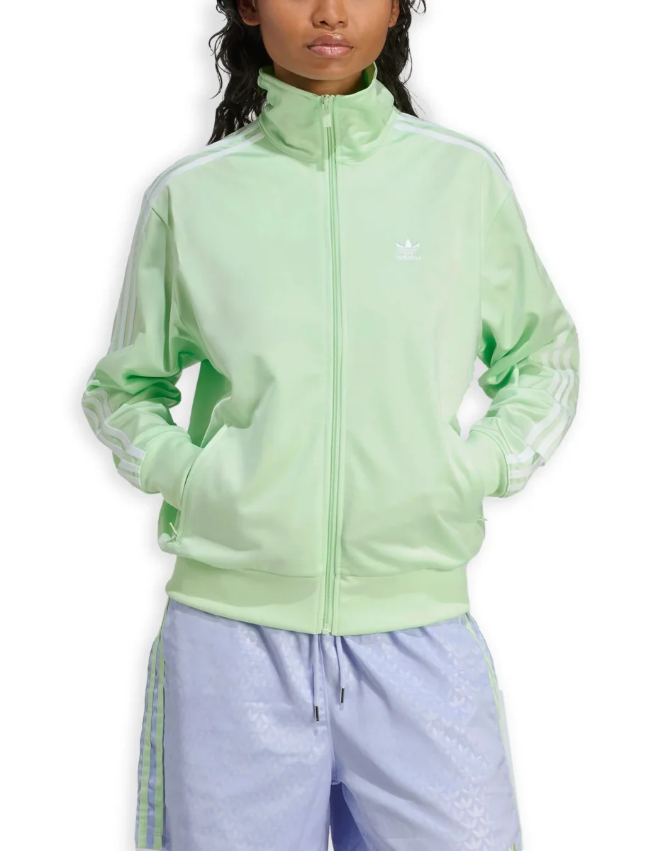 Felpa zip Adidas modello firebird tt segrsp colore verde acqua da donna con logo frontale e bande laterali cotone morbido vestibilità regolare.