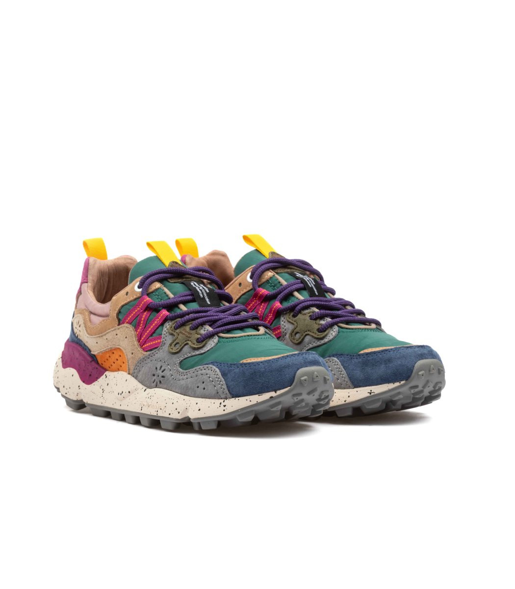 Le Flower Mountain Yamano 3 uniscono estetica outdoor e spirito urban in una sneaker dal design distintivo. Realizzate con tomaia in tessuto tecnico e suede premium, offrono traspirabilità, leggerezza e comfort, grazie alla soletta interna antibatterica e alla suola in gomma dentellata per un grip ottimale. Il mix cromatico le rende versatili e facili da abbinare, perfette per chi cerca sneakers lifestyle ispirate al trekking, ideali in città come nelle avventure all’aperto.