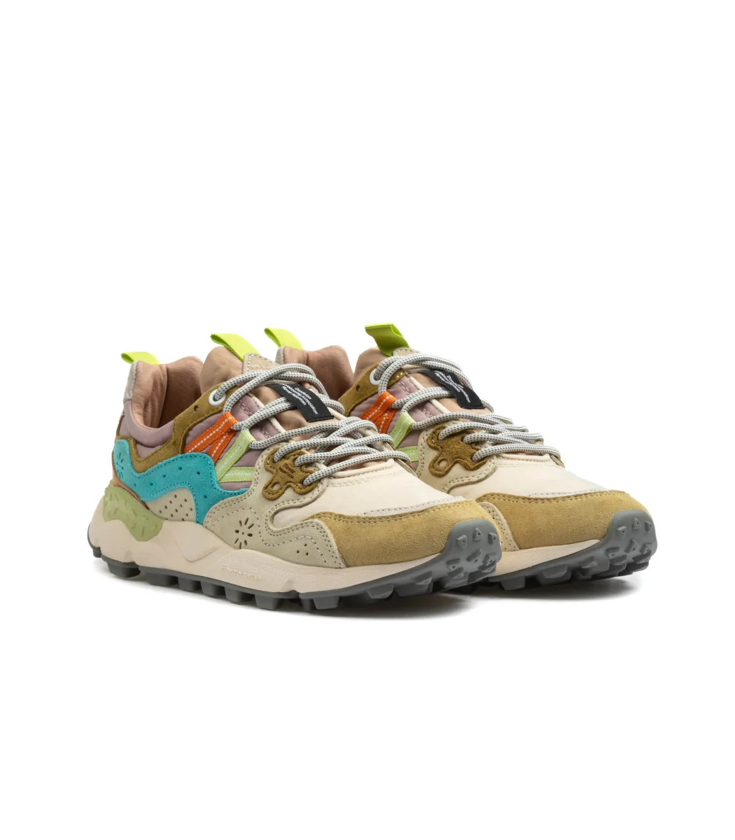 Le Flower Mountain Yamano 3 Woman Suede/Nylon Cream Milk / Light Blue sono sneakers outdoor-lifestyle super curate, con quel mix di materiali suede + nylon che dà texture e un look “hiking” pulito, perfetto anche in città. La palette cream milk con dettagli light blue è chiarissima e fresca, ma zero “fredda”: sta benissimo con denim, beige, grigi, cargo e outfit total neutral. Sono fatte per camminare tanto senza perdere stile, grazie a una costruzione comoda e una suola con grip che le rende stabili e sicure nel daily. SKU: YAMANO3-1E94