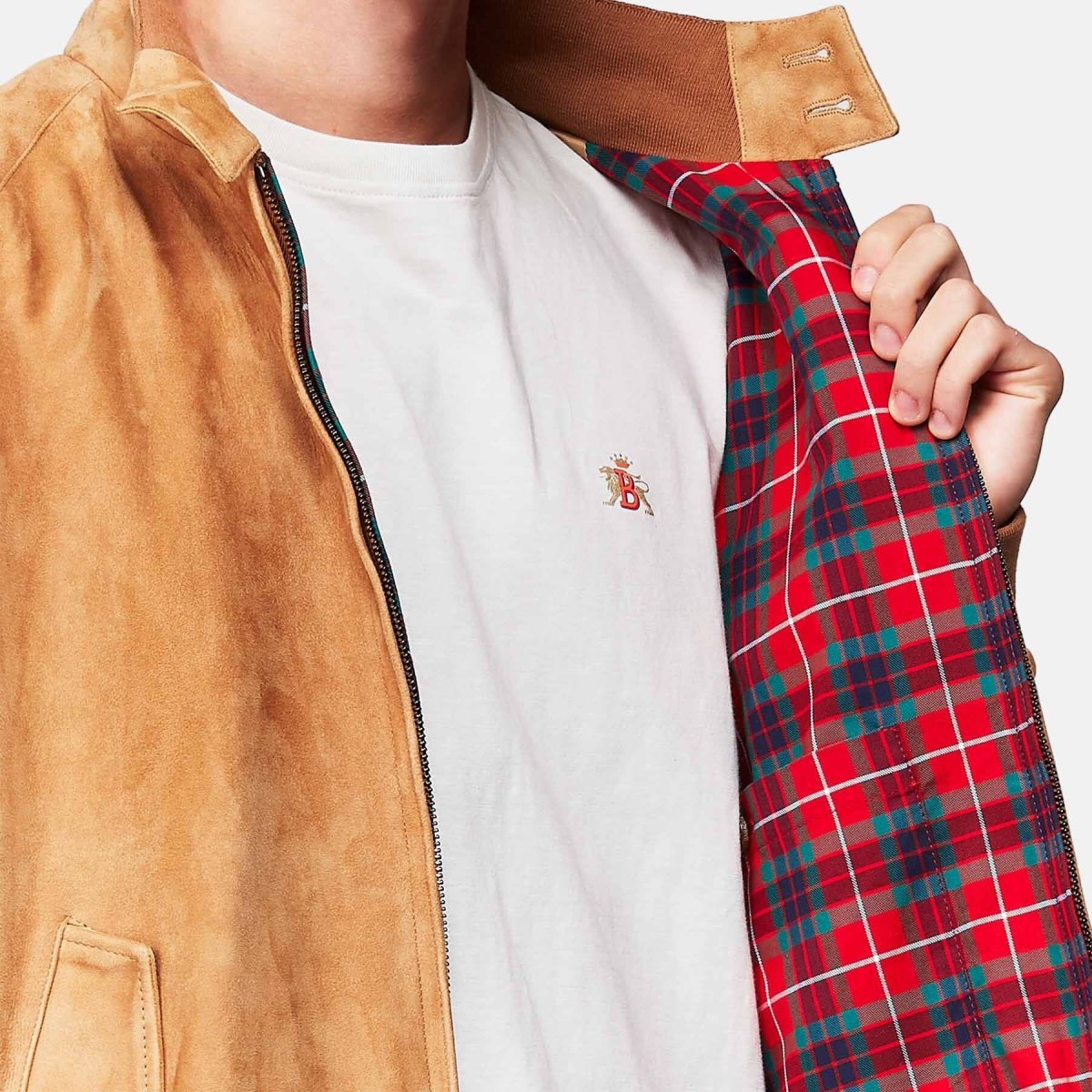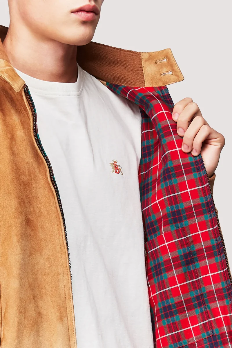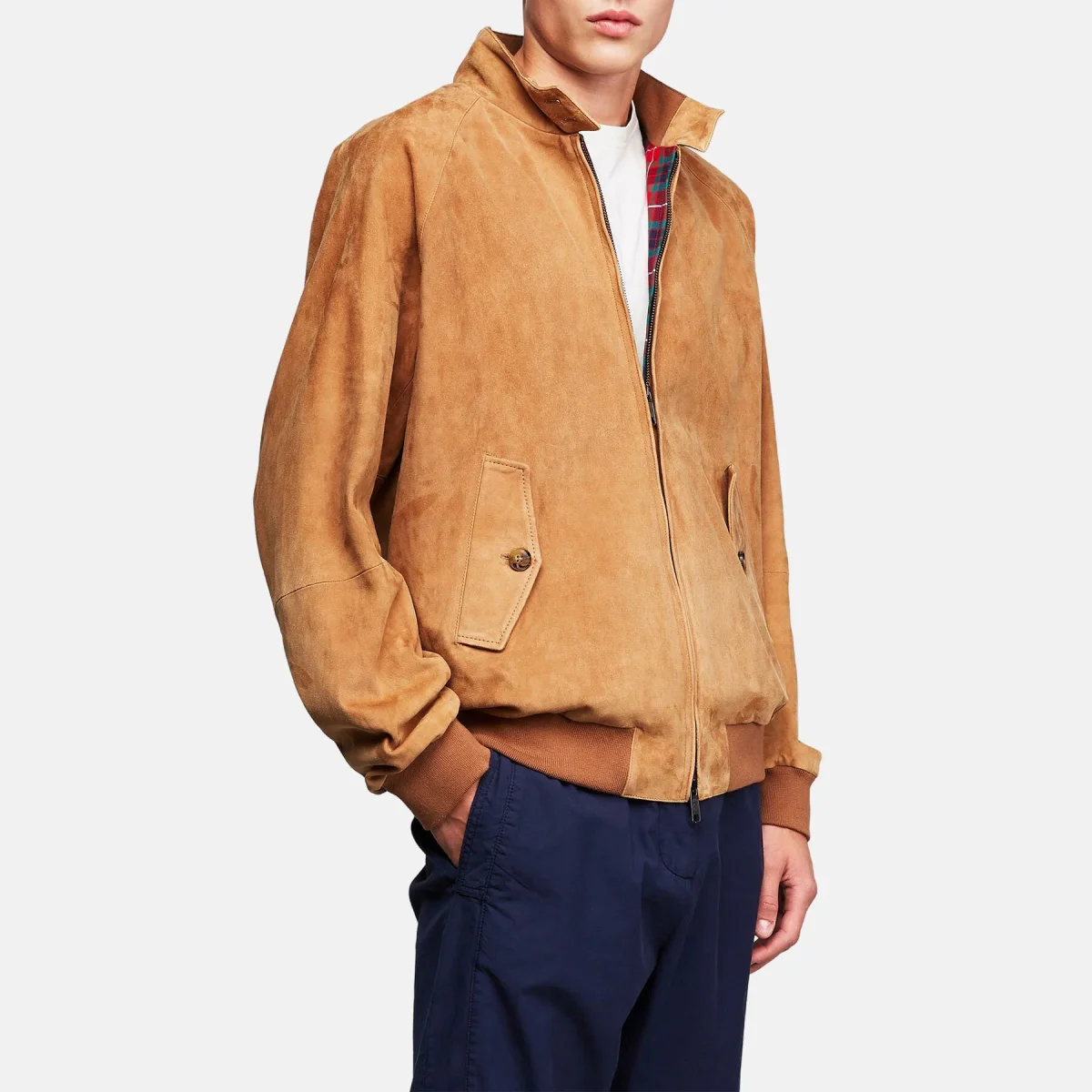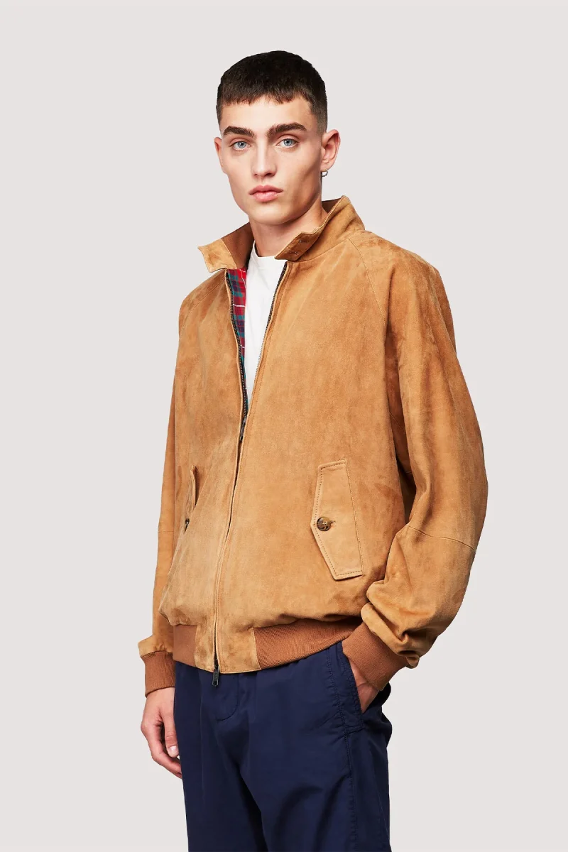 La giacca in camoscio, un must-have per ogni guardaroba. Il G9 Suede Authentic Fit è proprio un classico Harrington Jacket, ma realizzato in puro camoscio. Questo capo è diventato un vero e proprio staple, divenuto popolare nel corso degli anni grazie alla sua versatilità, che lo ha reso un’inconfondibile icona di stile. La fodera Fraser Tartan è in tessuto traspirante Coolmax®. La giacca presenta il classico colletto a due bottoni, le tasche laterali oblique, lo spallone con motivo ad ombrello, i polsini, la vita e il collo interno a coste. Il capo è stato realizzato a mano in Italia.