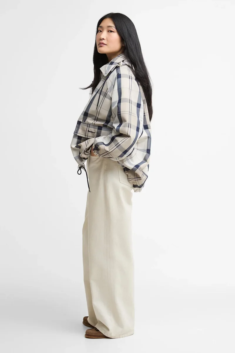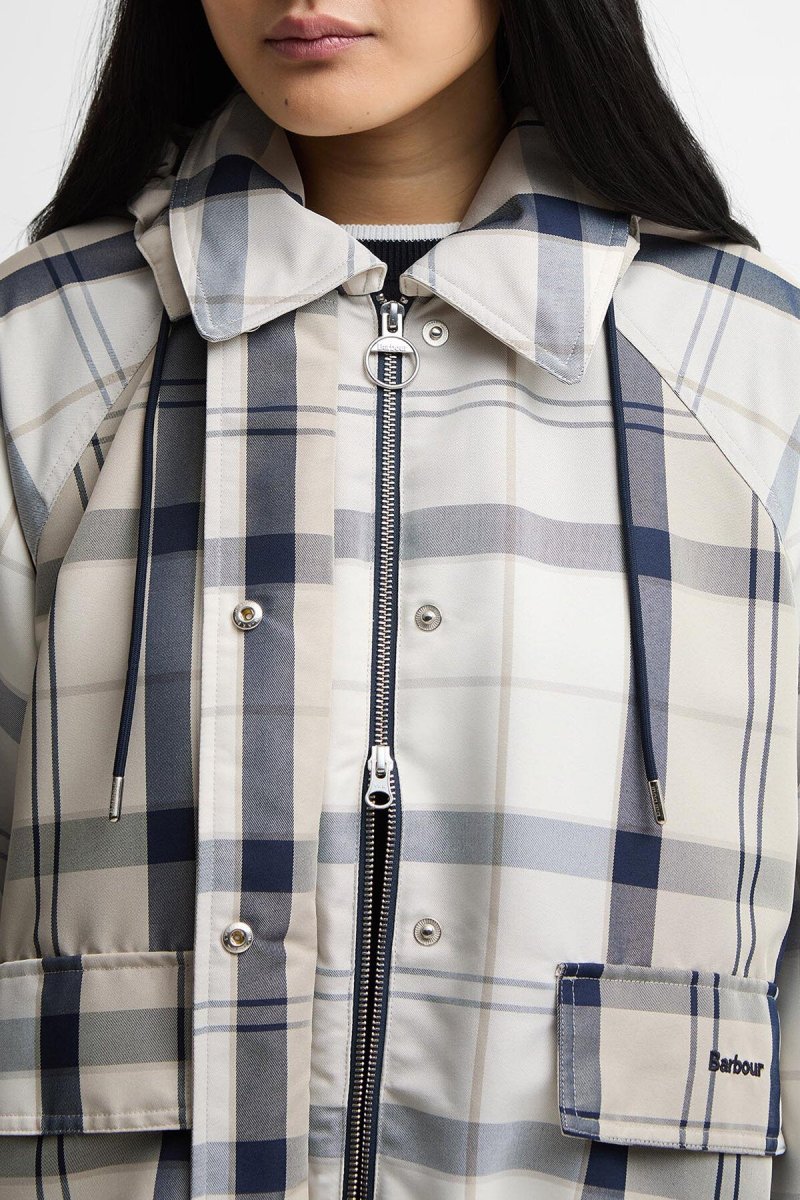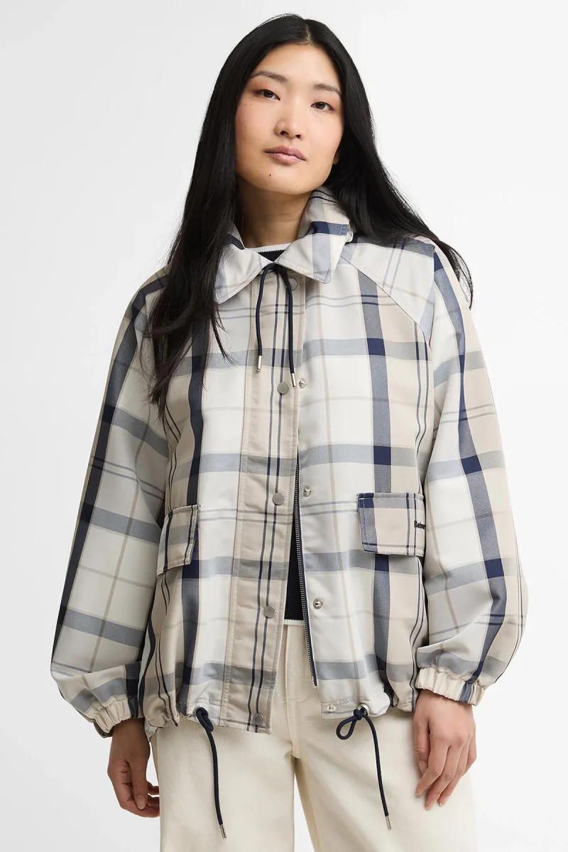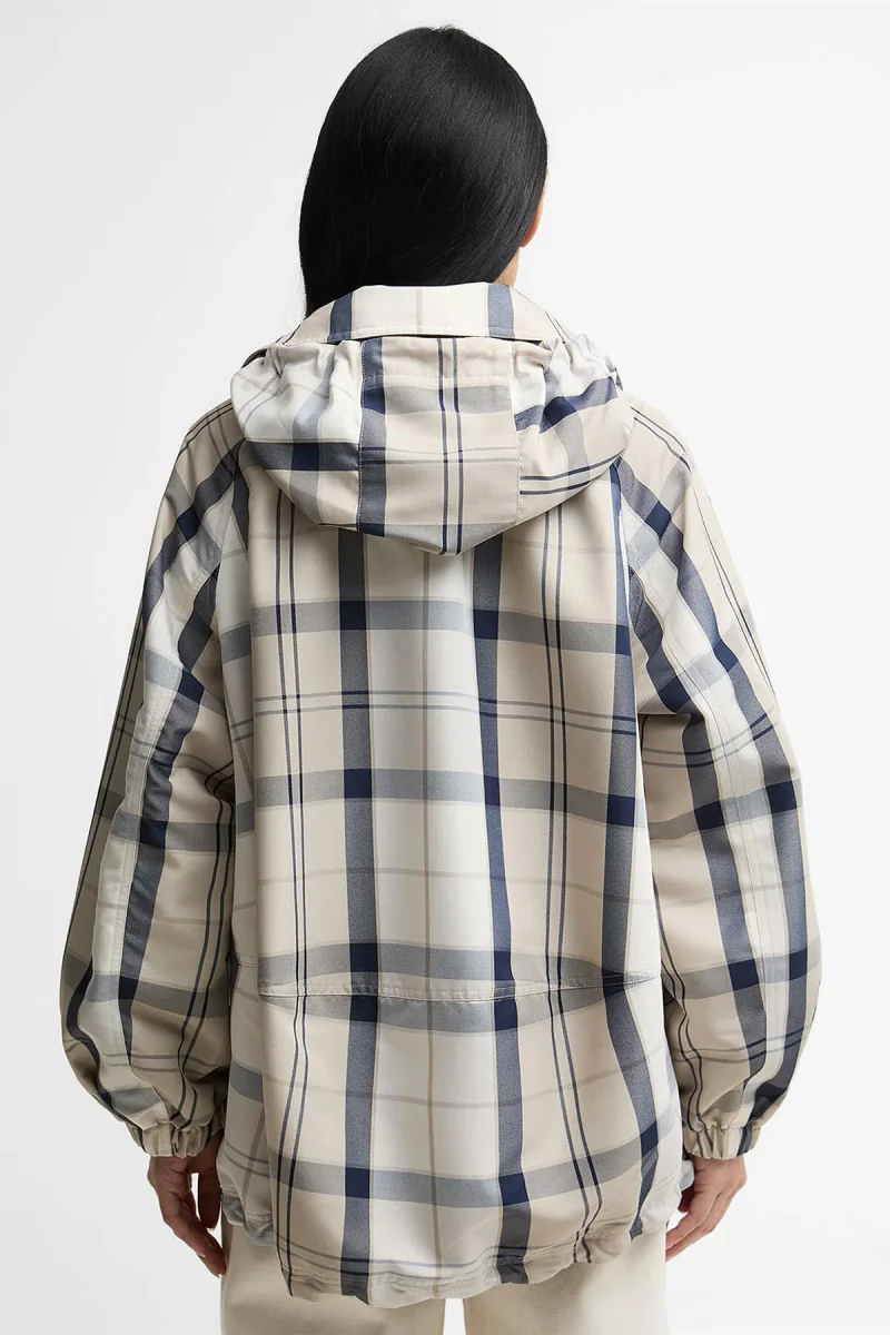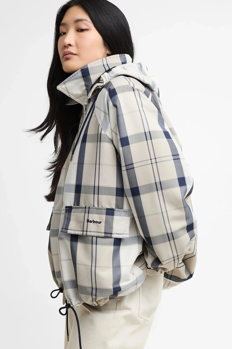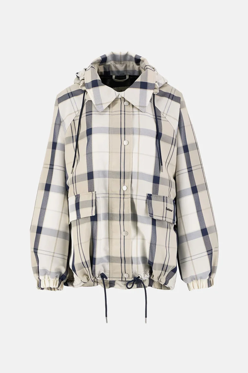 La giacca antipioggia Ballina con motivo a quadri di Barbour coniuga alla perfezione praticità impeccabile e design contemporaneo. Caratterizzata da una silhouette oversize, la giacca presenta un audace motivo a quadri, un cappuccio rimovibile e pratiche tasche con patta. La coulisse sull’orlo e sul cappuccio permette di regolare la vestibilità del capo, mentre la chiusura con bottoni a pressione sul davanti e la fodera in mesh traspirante assicurano un comfort e una protezione eccezionali quando le condizioni atmosferiche diventano imprevedibili.
