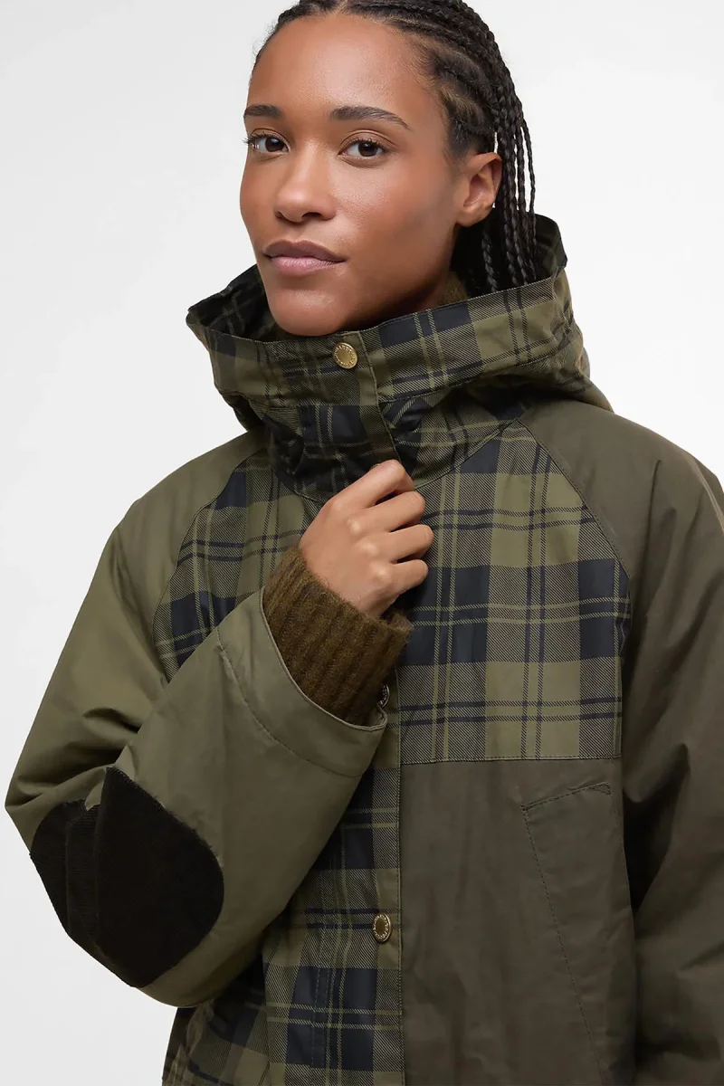 Se cerchi un capospalla affidabile da indossare in qualsiasi condizione atmosferica, vai sul sicuro con la giacca antipioggia Shelley di Barbour. Non potrai farne a meno per le tue avventure all’aperto! Questo modello con lavorazione patchwork offre il perfetto equilibrio tra tartan, velluto a coste sottili e pannelli in tinta unita insieme a un cappuccio snorkel in leggero tessuto isolante, tasche scaldamani e finiture a coste sottili per un classico look in stile Barbour.