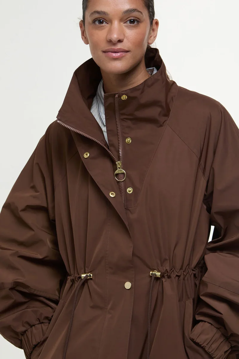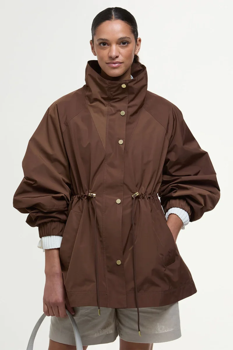 Versione più moderna della classica giacca antipioggia, il modello Suri sarà un fido compagno durante le giornate di pioggia. Dotato di una coulisse in vita che esalta la silhouette femminile e di un collo a imbuto, questo capospalla è rifinito da una chiusura a zip nascosta per offrirti una maggiore protezione dalle intemperie.