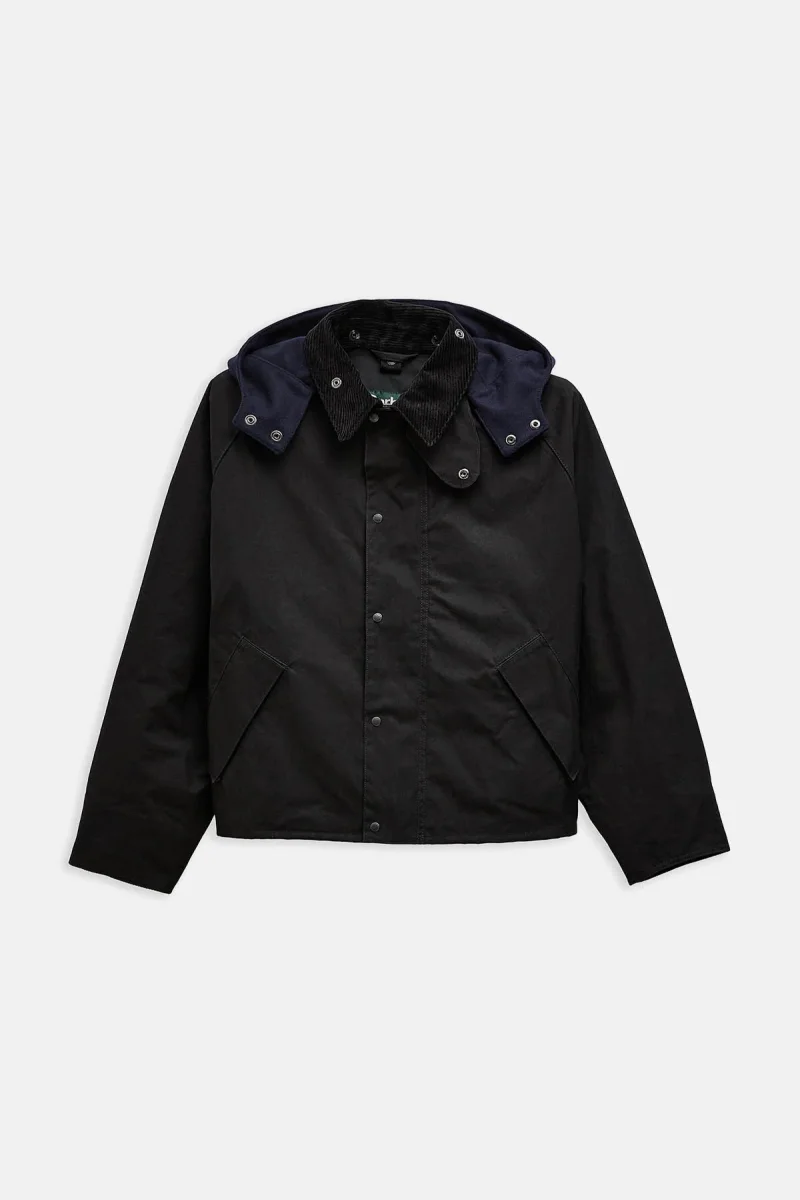 Ispirata al modello Transport d’archivio, la giacca casual Cruiser firmata Barbour x Kaptain Sunshine rappresenta un’aggiunta di carattere alla tua collezione di capi outerwear. Realizzato in tessuto cerato con finitura a secco, questo capospalla presenta un cappuccio in lana rimovibile e un collo a coste sottili a contrasto, regalando un pizzico di moderna vivacità al modello d’archivio. Caratterizzato da tasche a filetto reversibili e da dettagli con bottoni a pressione all’interno che consentono di applicarlo alla giacca trapuntata della collezione, questo modello leggero è perfetto per affrontare le mezze stagioni.