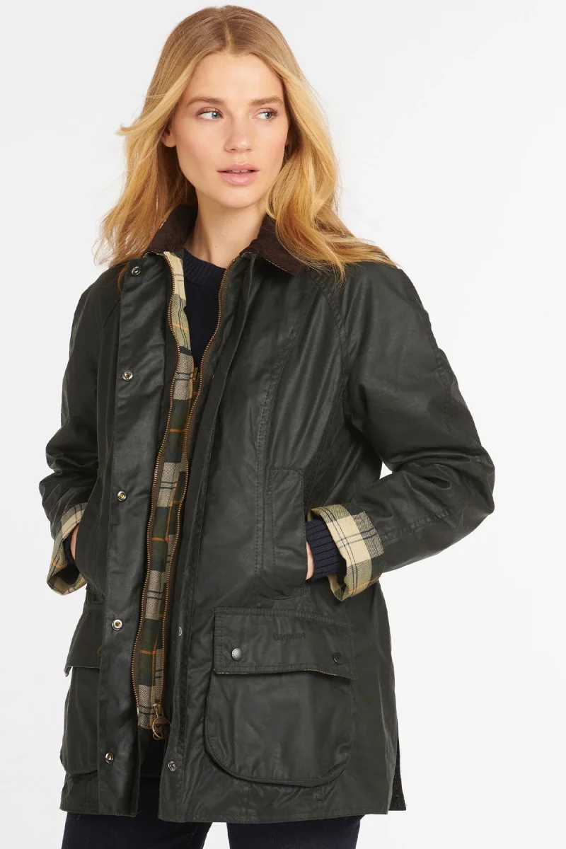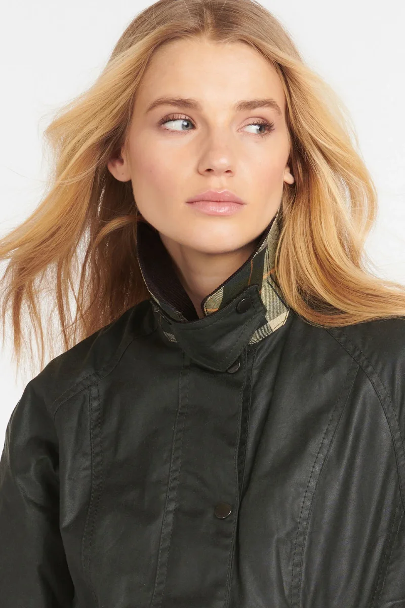 Basata sul leggendario Bedale ma tagliata su una silhouette femminile, la giacca cerata Barbour Beadnell è dotata di uno stile iconico realizzato con il tradizionale cotone cerato Thornproof. Il colletto in velluto a coste, la classica fodera in tartan e le numerose tasche per riporre tutto il necessario sono disponibili in diverse varianti, tra cui la versione con cerniera e cappuccio, che rendono la Beadnell una giacca versatile per tutte le stagioni.