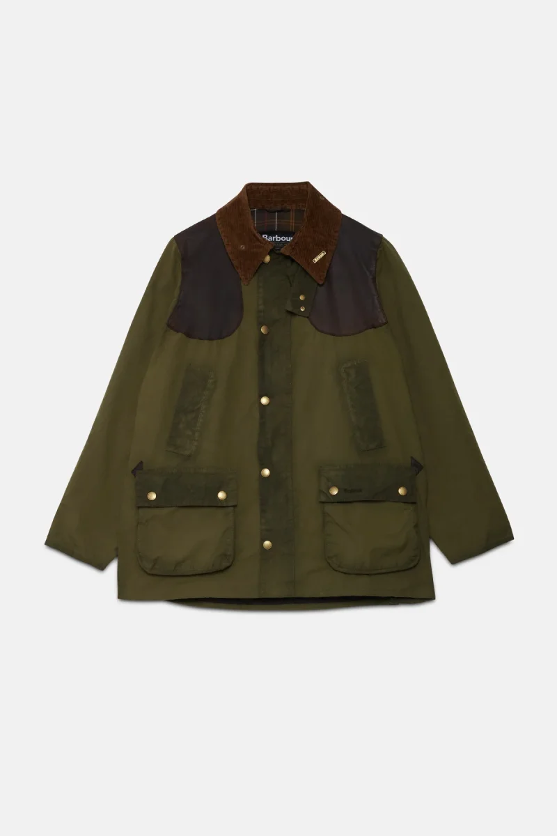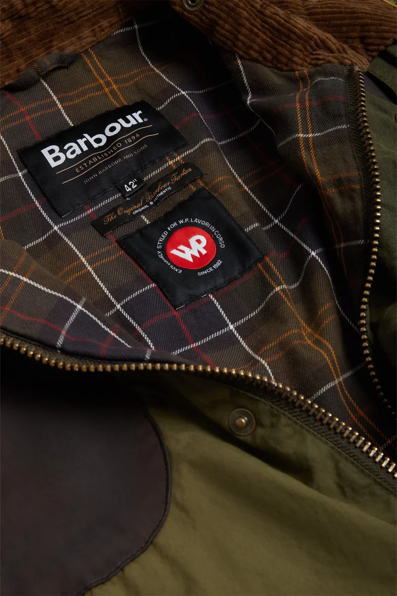 Barbour e WP hanno collaborato per creare il pacchetto SMU, una mini collezione pensata per riportare in vita i capi Barbour provenienti dall’archivio WP, unendo il DNA di Barbour con quello heritage di WP. La giacca cerata Bedale è una riedizione di un capo storico, reinterpretato utilizzando tecniche moderne che riproducono fedelmente tutti gli elementi iconici. La giacca è arricchita con materiali premium, come la pelle di manifattura inglese. L’esterno è realizzato in cotone cerato lavato con l’uso di pietre e sod, mentre l’interno è foderato in tartan classico. La giacca è caratterizzata da due tasche a toppa e due tasche a filetto sul davanti e presenta una chiusura con bottoni, offrendo un design senza tempo e funzionale.