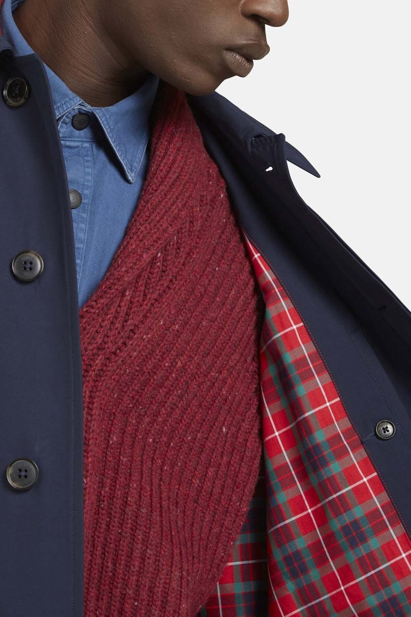 Vi presentiamo il G12! Direttamente dai nostri archivi Baracuta, questo modello si distingue per la sua silhouette elegante e la sua lunghezza. È un cappotto estremamente versatile e funzionale. Può essere indossato anche con il nostro gilet Baracuta, fissato all’interno grazie alla pratica clip e bottone. I dettagli raffinati lo rendono inconfondibile: il classico spallone con motivo ad ombrello, le tasche anteriori oblique, i polsini regolabili con bottoni e la caratteristica fodera Fraser Tartan. Abbinato al nostro maglione girocollo Fisherman, il G12 sarà il tocco finale per un look di grande classe ed eleganza, ideale per affrontare con stile anche le giornate più fredde. Made in the UK.