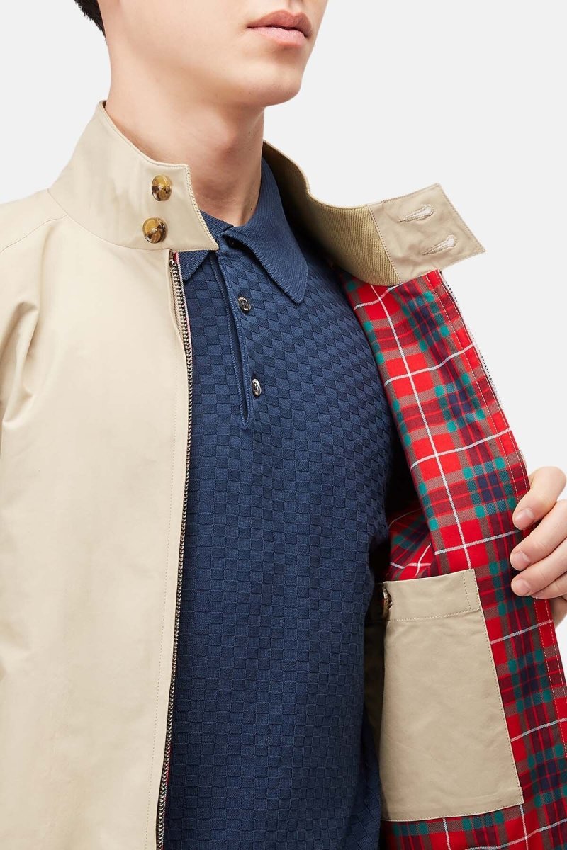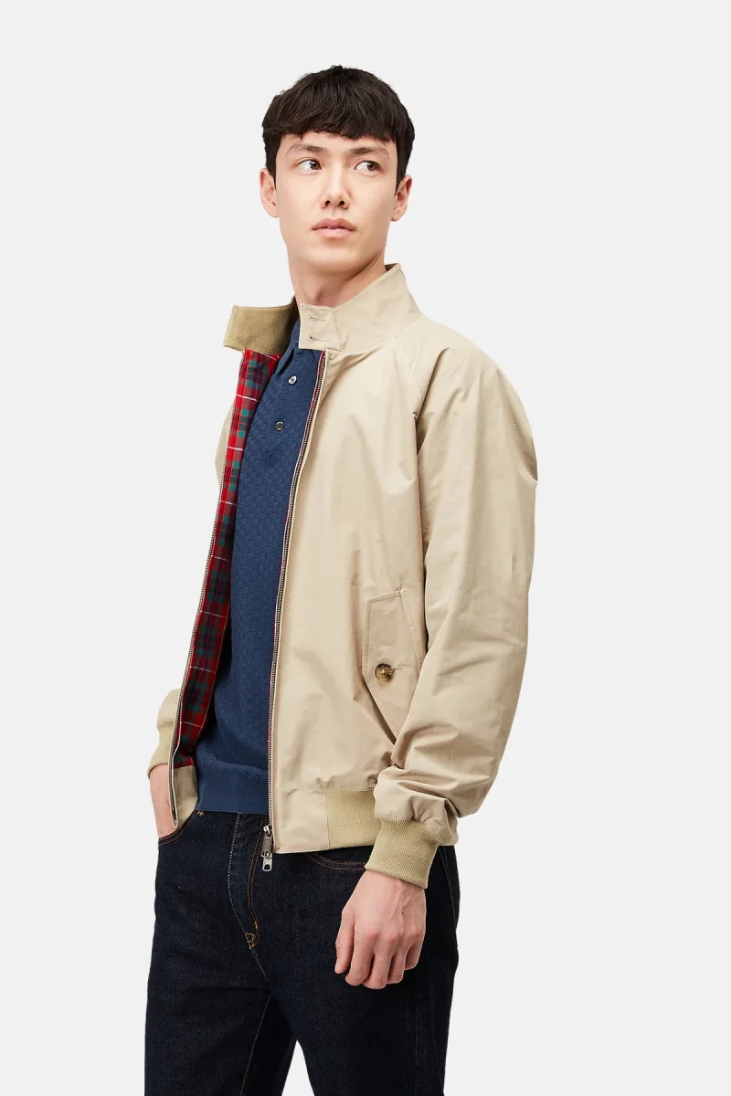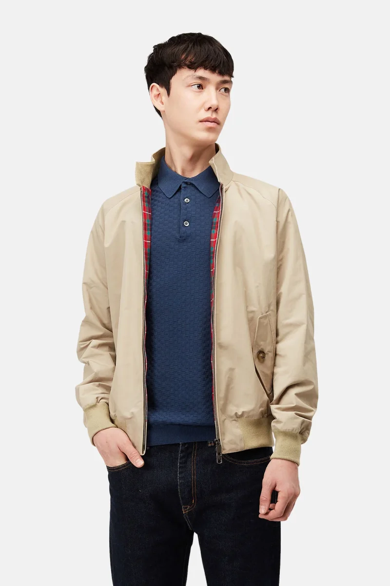 Ci sono pochi capi più British del G9 Baracuta, l’unica e sola giacca Harrington originale. Si tratta di una vera e propria icona di abbigliamento, che abbraccia anche diverse subculture, disegnata e realizzata nel Regno Unito sin dal 1937. La giacca è foderata con l’iconico Fraser Tartan, realizzata in tessuto Coolmax® traspirante. Altre caratteristiche sono il classico colletto a due bottoni, le tasche profonde, ideate inizialmente per contenere due palline da golf, i polsini e l’orlo a coste. Rifinito dall’inconfondibile spallone con motivo ad ombrello, ideale protezione dalla pioggia. Baracuta e il G9 sono pronti a coprirvi le spalle … letteralmente! Realizzato da sempre nel Regno Unito e creato appositamente per l’imprevedibile clima britannico, si presta ad essere indossato in qualsiasi ambiente, da qualsiasi persona e in qualsiasi stagione. Vi consigliamo di abbinarlo ai nostri pantaloni di velluto a coste e al maglione girocollo Shetland per le serate con gli amici.