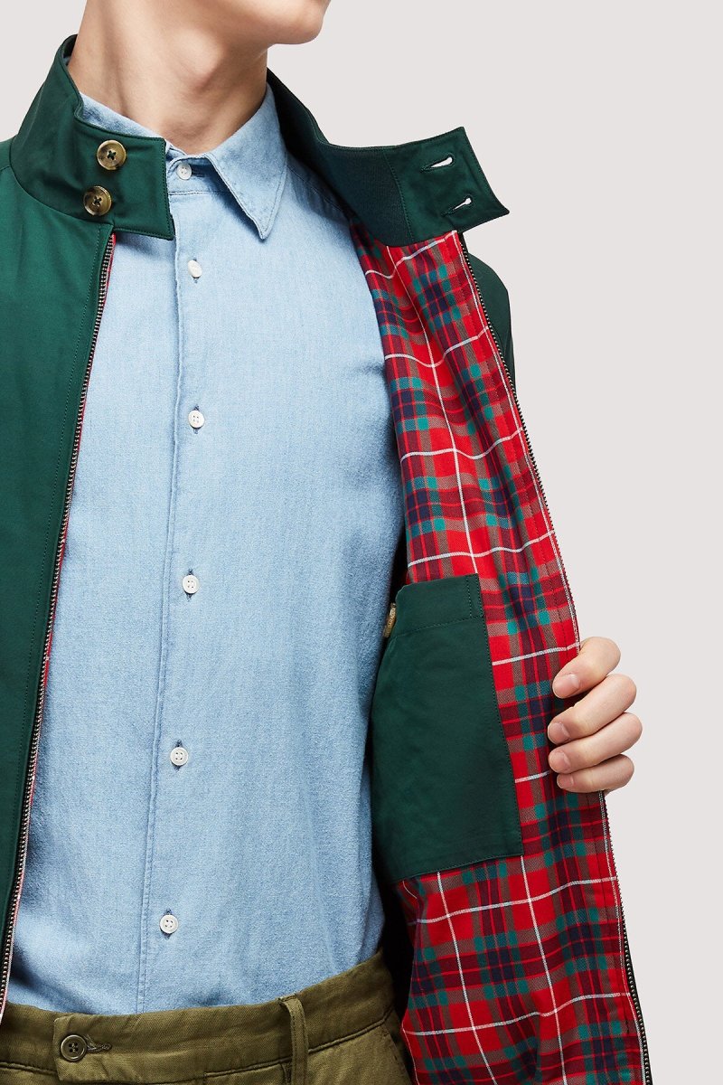 Ci sono pochi capi più British del G9 Baracuta, l’unica e sola giacca Harrington originale. Si tratta di una vera e propria icona di abbigliamento, che abbraccia anche diverse subculture, disegnata e realizzata nel Regno Unito sin dal 1937. La giacca è foderata con l’iconico Fraser Tartan, realizzata in tessuto Coolmax® traspirante. Altre caratteristiche sono il classico colletto a due bottoni, le tasche profonde, ideate inizialmente per contenere due palline da golf, i polsini e l’orlo a coste. Rifinito dall’inconfondibile spallone con motivo ad ombrello, ideale protezione dalla pioggia. Baracuta e il G9 sono pronti a coprirvi le spalle … letteralmente! Realizzato da sempre nel Regno Unito e creato appositamente per l’imprevedibile clima britannico, si presta ad essere indossato in qualsiasi ambiente, da qualsiasi persona e in qualsiasi stagione. Vi consigliamo di abbinarlo ai nostri pantaloni di velluto a coste e al maglione girocollo Shetland per le serate con gli amici.