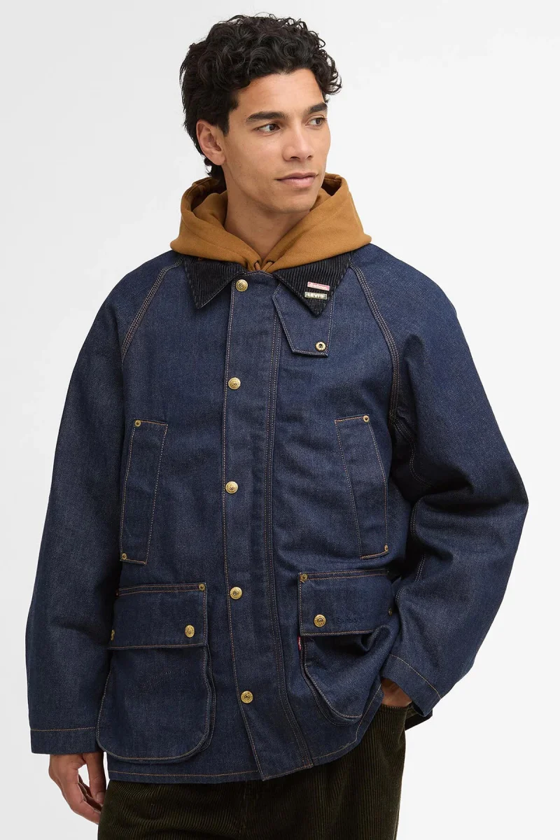 La giacca in denim Bedale oversize firmata Barbour x Levi’s offre un’interpretazione in chiave contemporanea di uno dei design più iconici di Barbour. Entrata a far parte della collezione nel 1980, la giacca Bedale è stata originariamente progettata da Dame Margaret Barbour per gli sport ippici. La collezione propone questo classico capospalla impreziosito dagli iconici dettagli di Levi’s quali il denim resistente, i rivetti in rame e i bottoni con gambo logati, nonché dagli inconfondibili dettagli di Barbour che includono le tasche scaldamani e a soffietto, il colletto in velluto a coste e la chiusura a zip con tiretto ad anello, esprimendo al massimo il DNA di entrambi i brand.