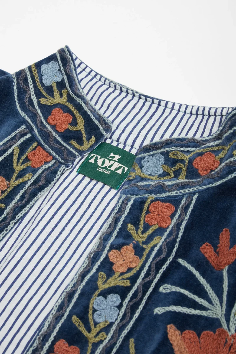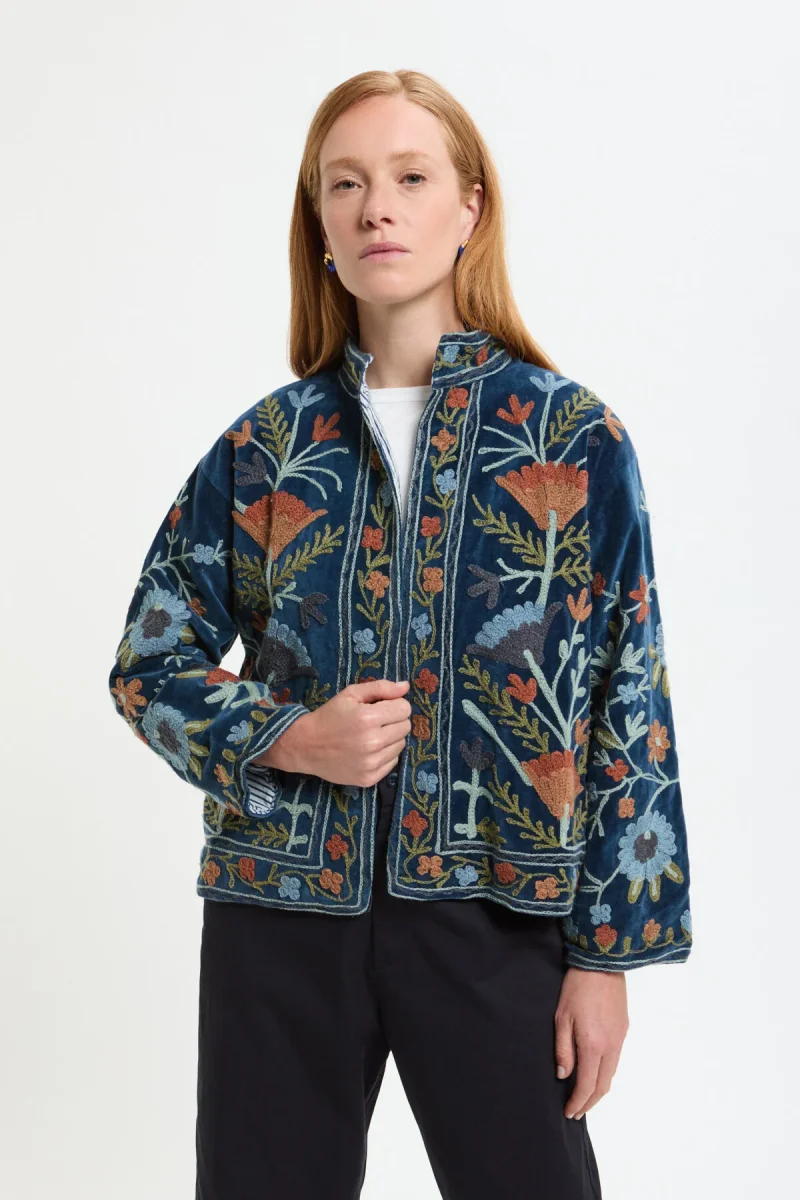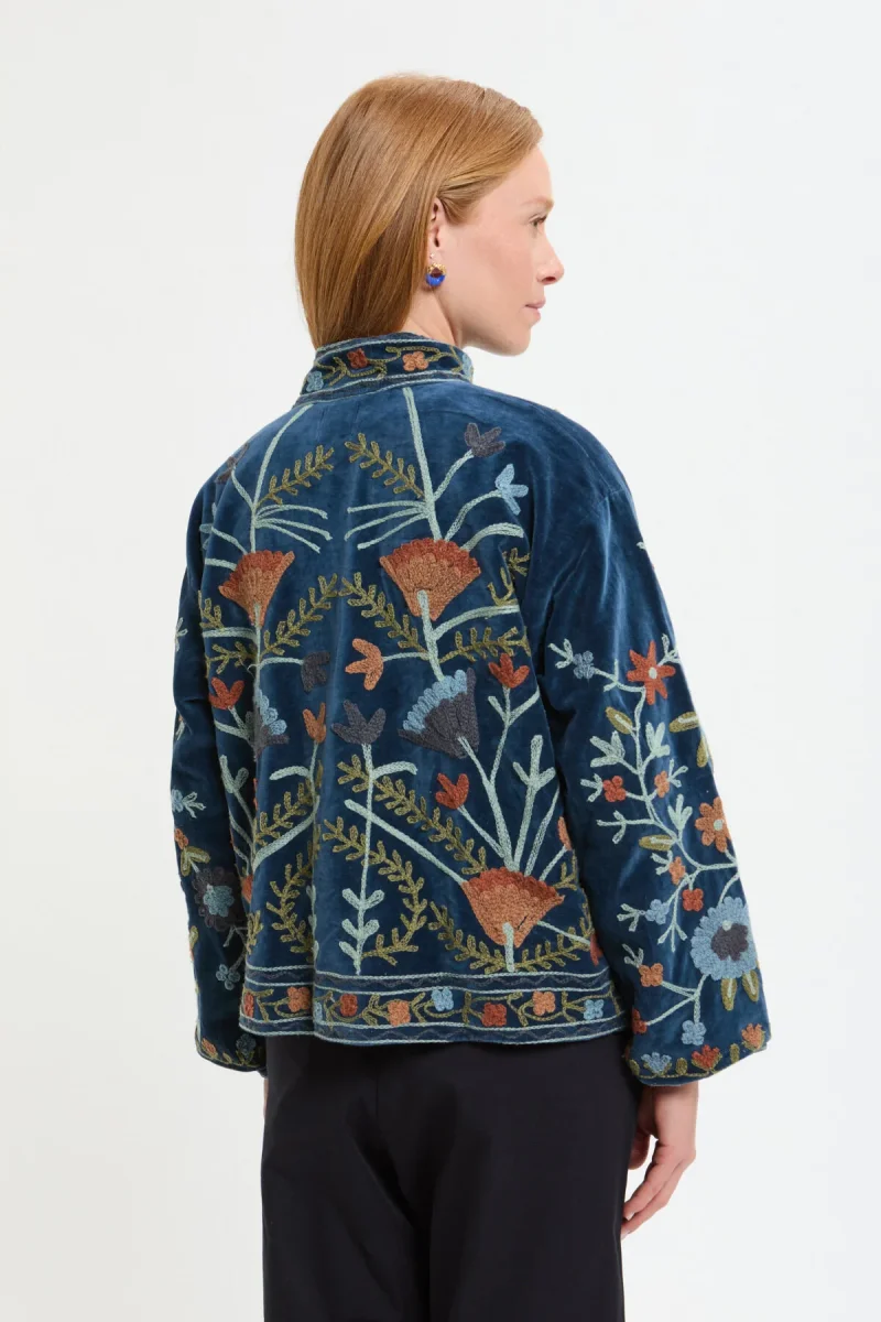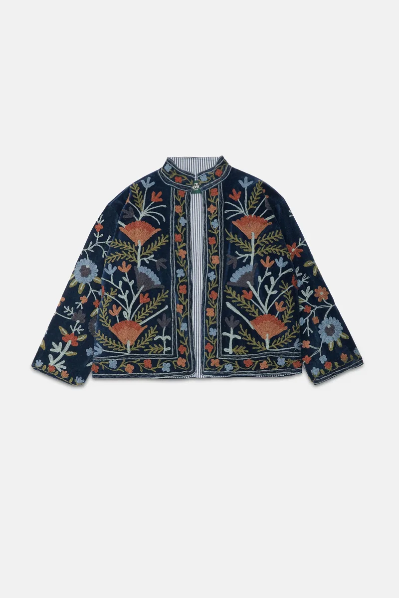 Giacche uniche, artigianali e piene di charme. Ogni giacca Tout Vintage in velluto ricamato è realizzata a mano in India e racchiude tutta la bellezza della tradizione tessile locale. Taglia unica, veste fino alla 42, e include una pratica dust bag. Ogni pezzo è diverso dall’altro: dettagli, pattern e ricami rendono ogni giacca davvero speciale.