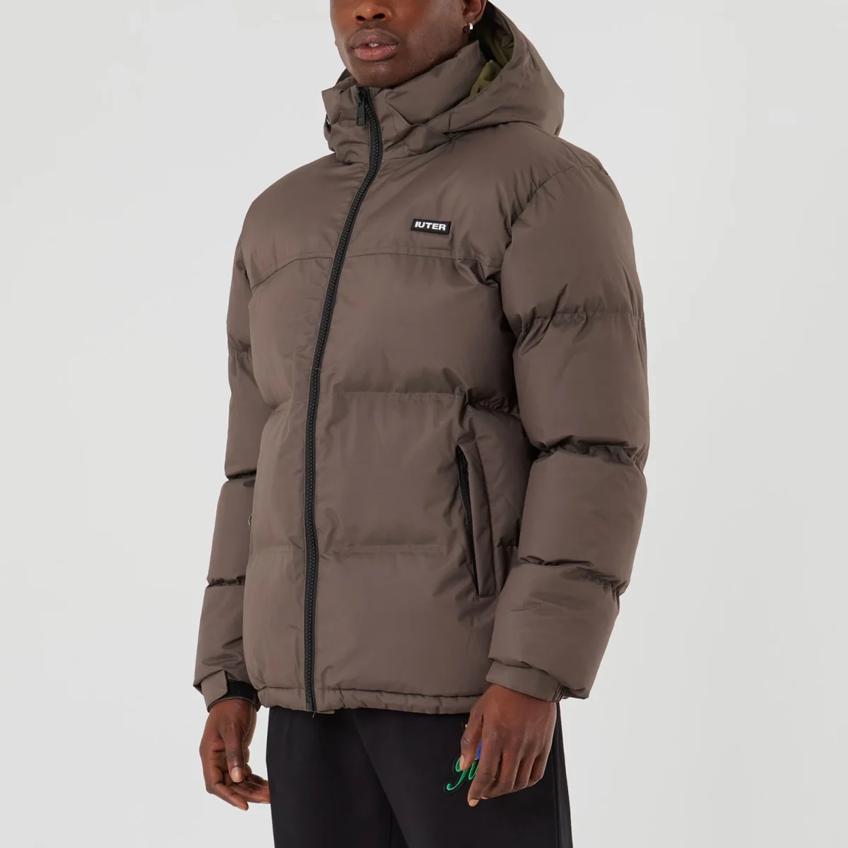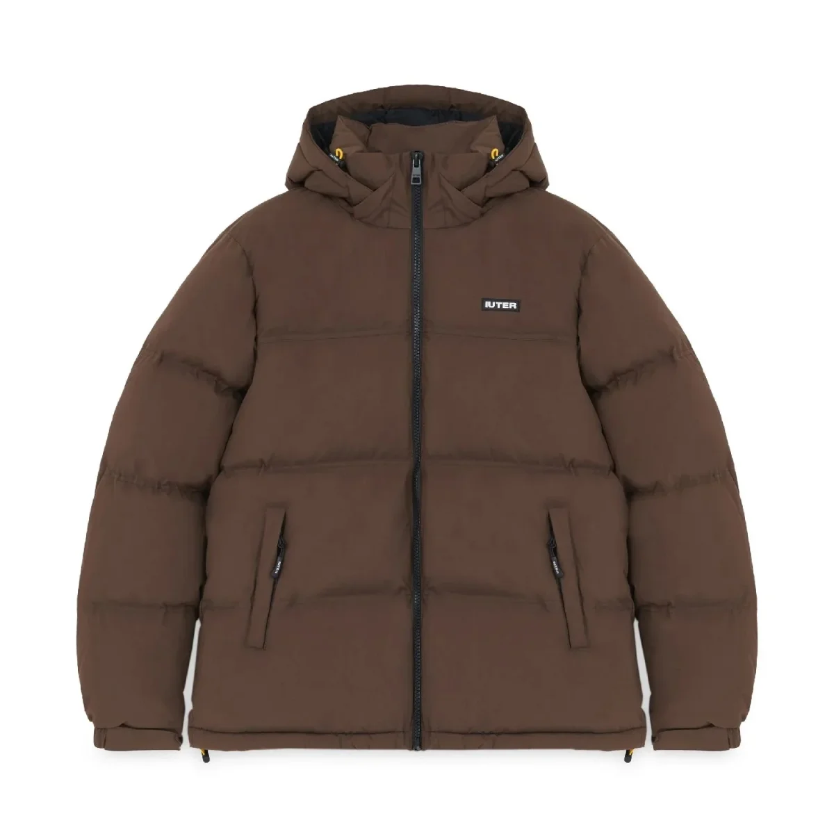 Giacca Iuter modello puff jacket colore marrone con cappuccio chiusura zip frontale e comode tasche logo ricamato vestibilità regolare. Imbottitura interna calda per resistere a qualsiasi condizione atmosferica.