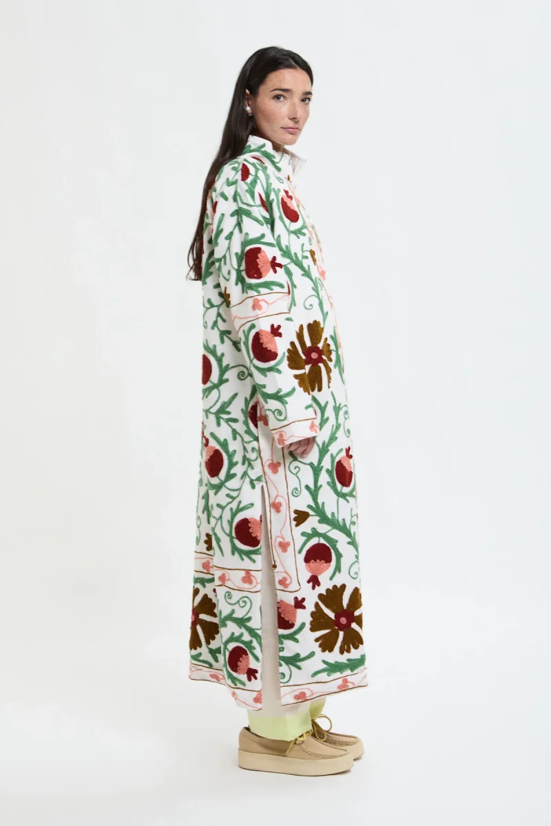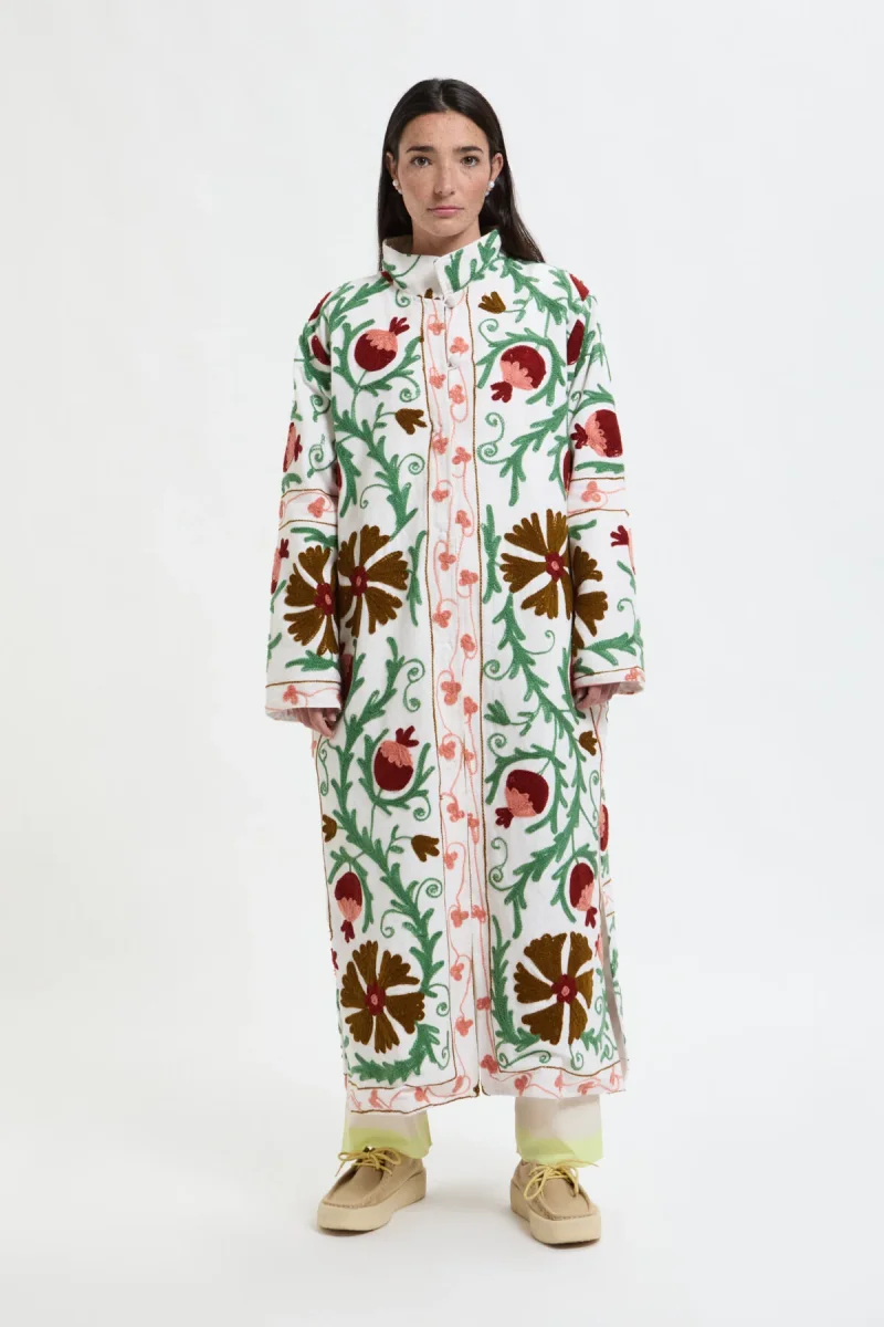 Lunga, leggera e ricca di dettagli. La giacca in cotone ricamato Tout Vintage è realizzata a mano in India e racconta tutta la bellezza dell’artigianato locale. Taglia unica (fino alla 42), ogni capo è unico e può presentare leggere variazioni nei pattern e differire leggermente dalla foto. Inclusa una pratica dust bag per conservarla al meglio.
