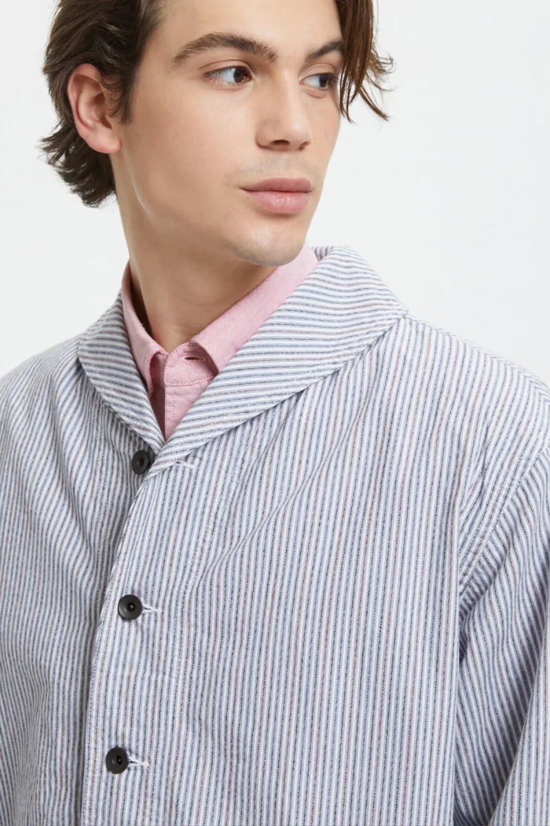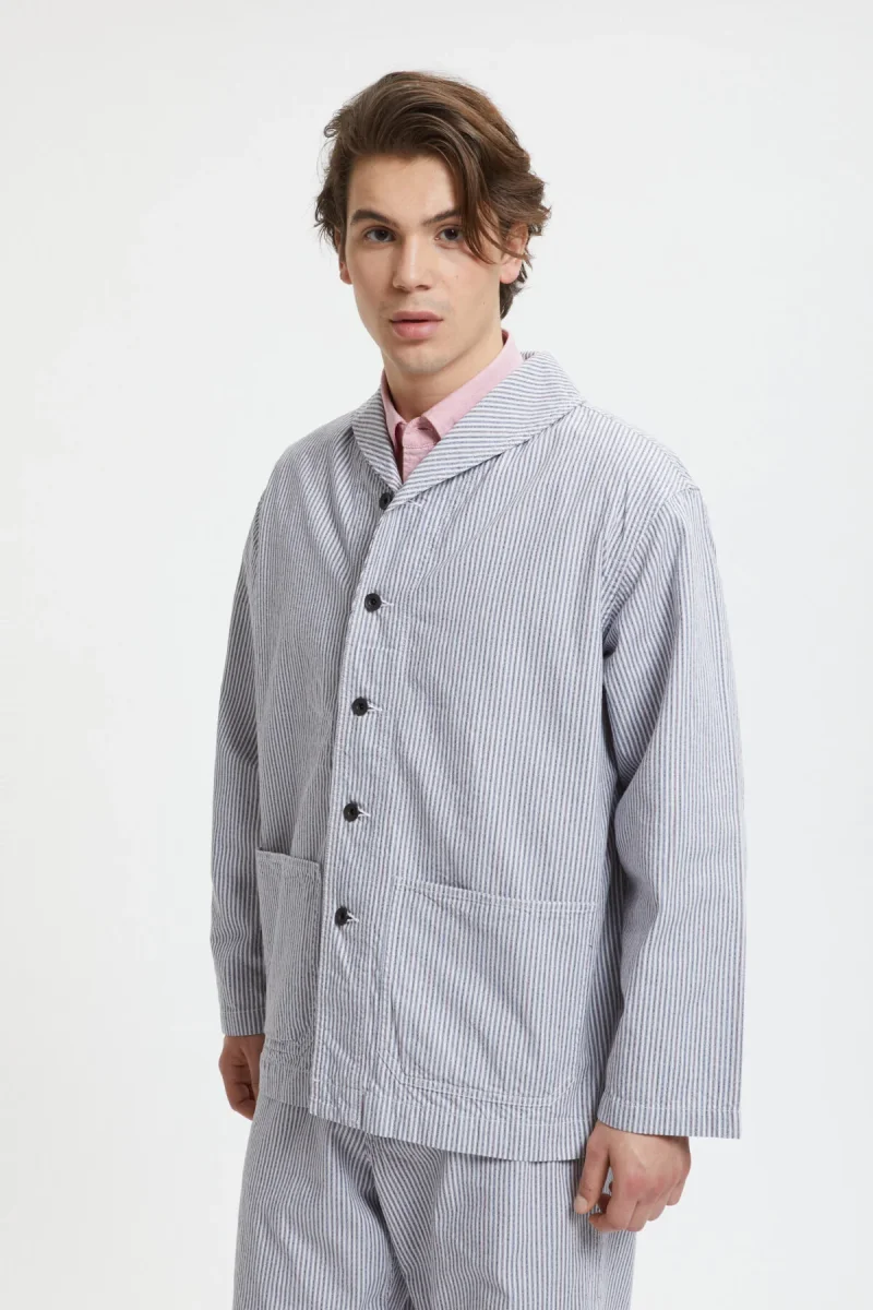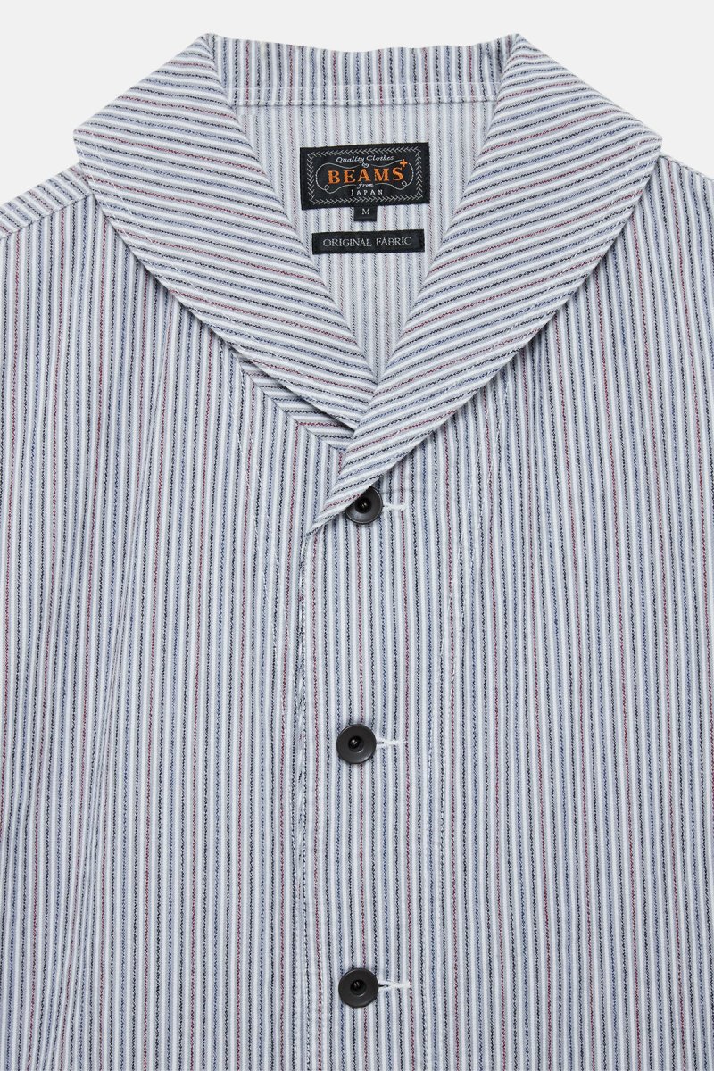 La giacca a collo a scialle di BEAMS PLUS è realizzata sulla base delle tute militari a collo a scialle. Il blazer è caratterizzato da 2 tasche a patch sul davanti e chiusura con semplici bottoni. Design casual senza fodera. Il taglio la rende adatta ad essere indossata a strati con felpe e camicie.