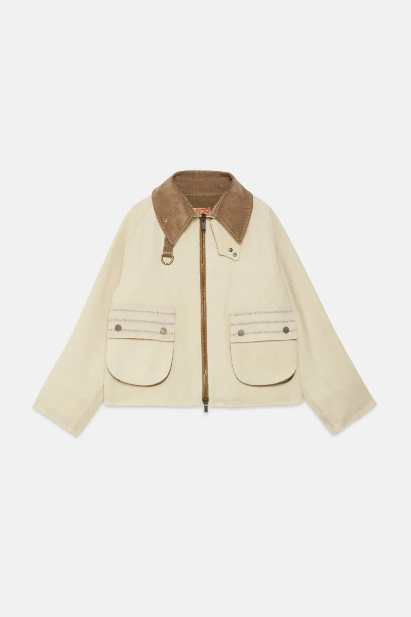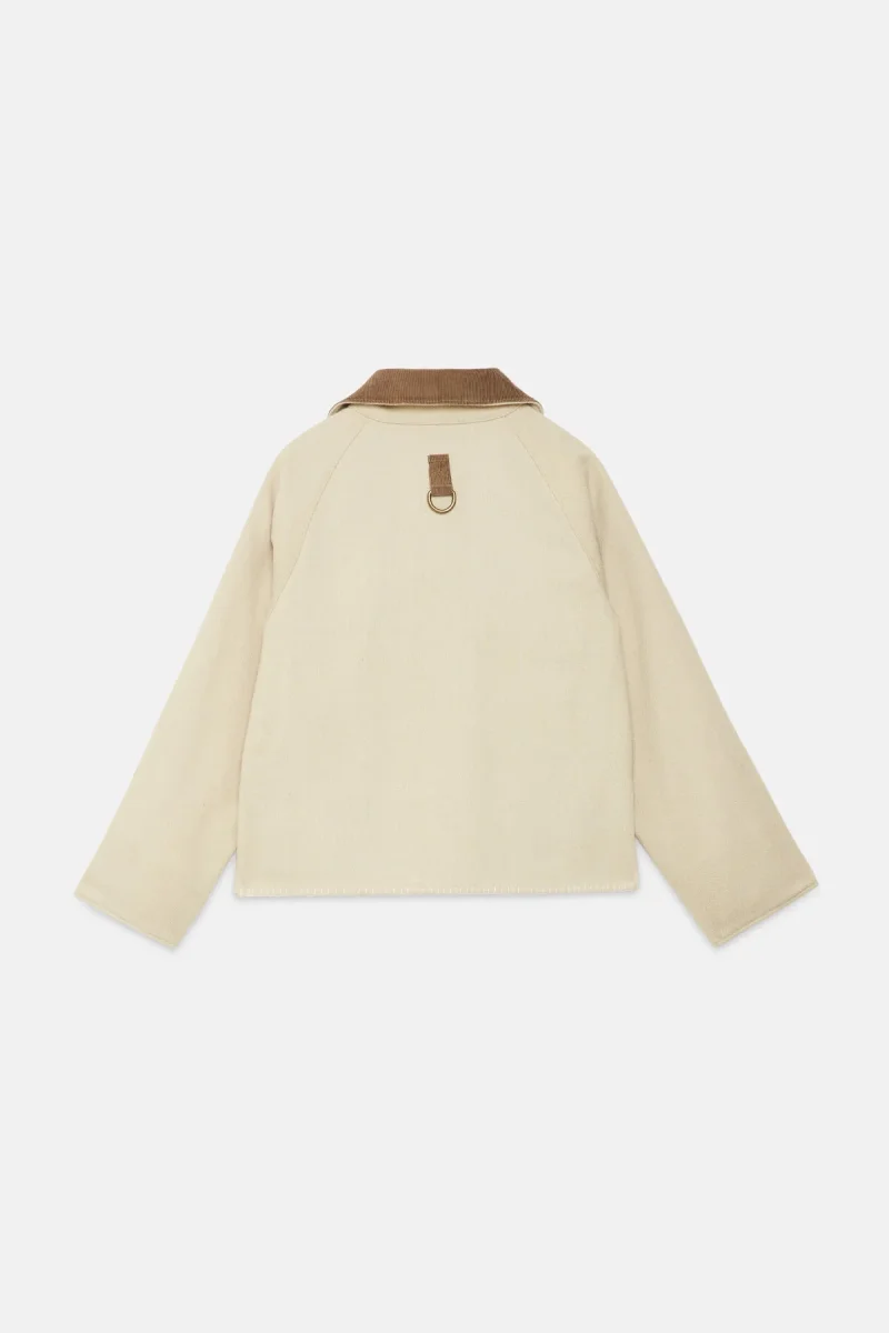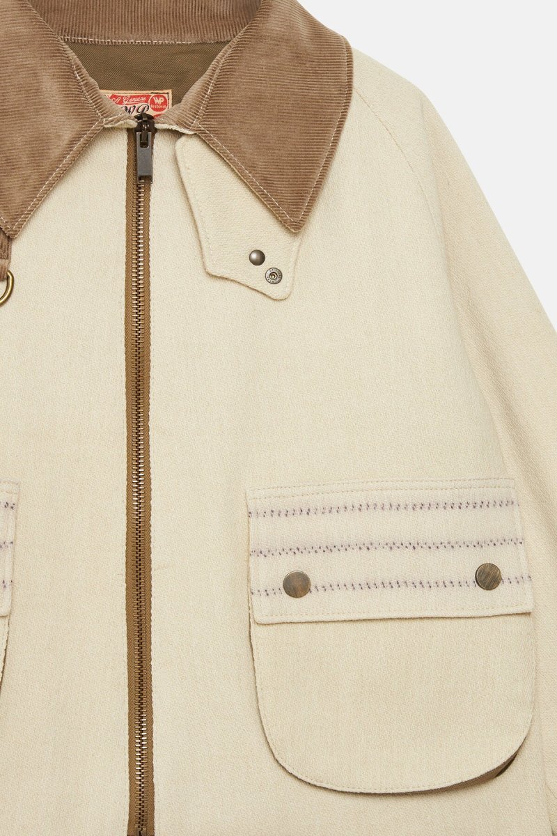 L’esterno di questa giacca WP Archivio rivisitata è realizzato con coperte militari vintage in lana a righe, risalenti principalmente agli anni Cinquanta. Foderata in cotone verde oliva, presenta una silhouette squadrata che consente di indossarla facilmente sopra altri capi. È dotata di un colletto in velluto a coste, di un anello a D sul petto, utile sia come dettaglio decorativo sia per appendere oggetti, e di due tasche a toppa sul davanti. Questo capo è un pezzo unico di alta qualità, realizzato in Italia con tessuti riciclati.