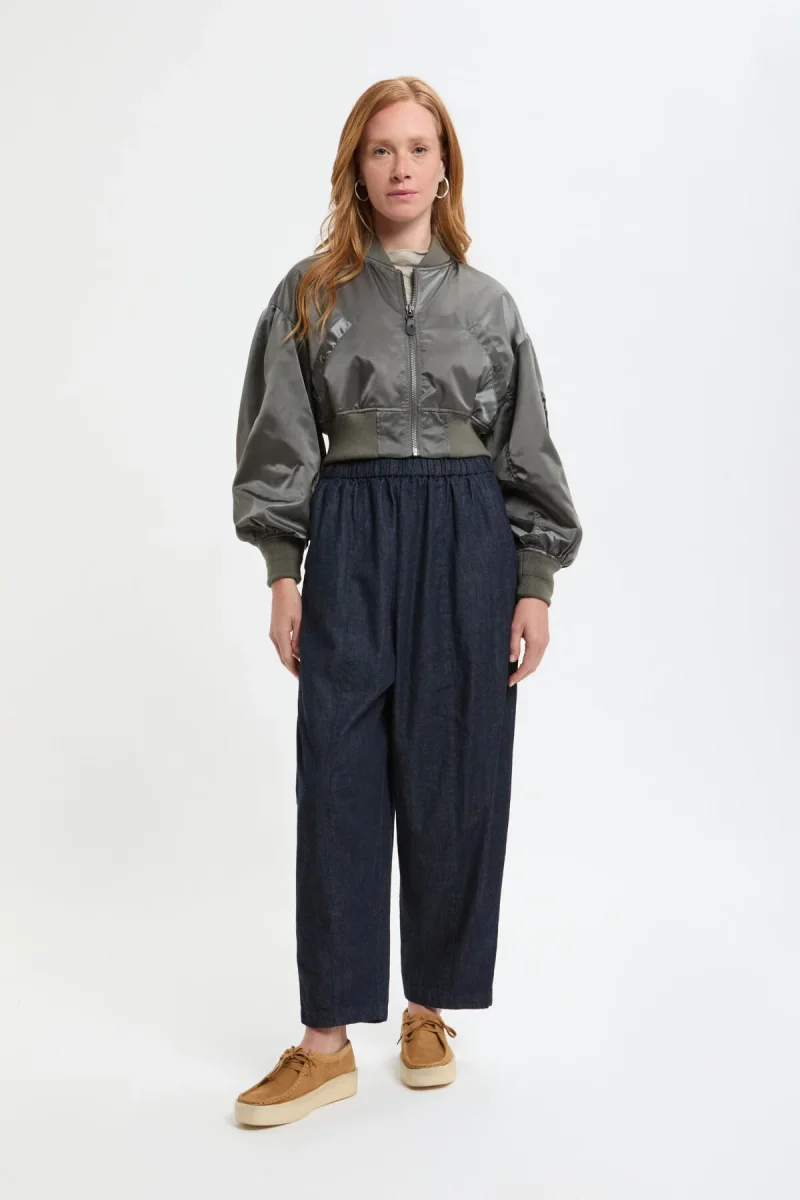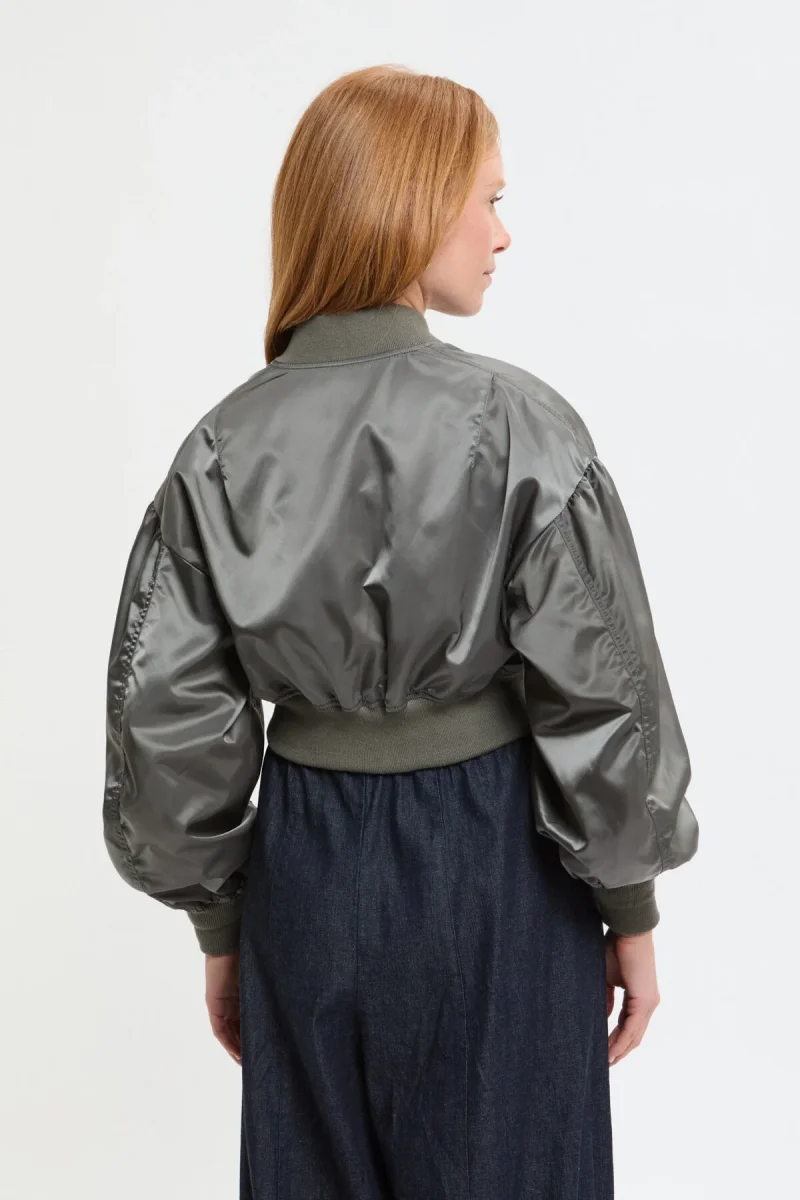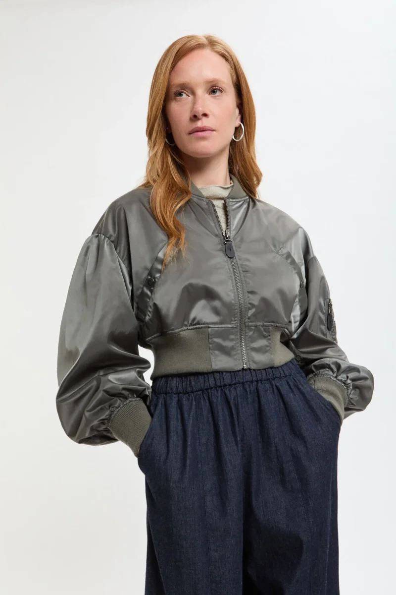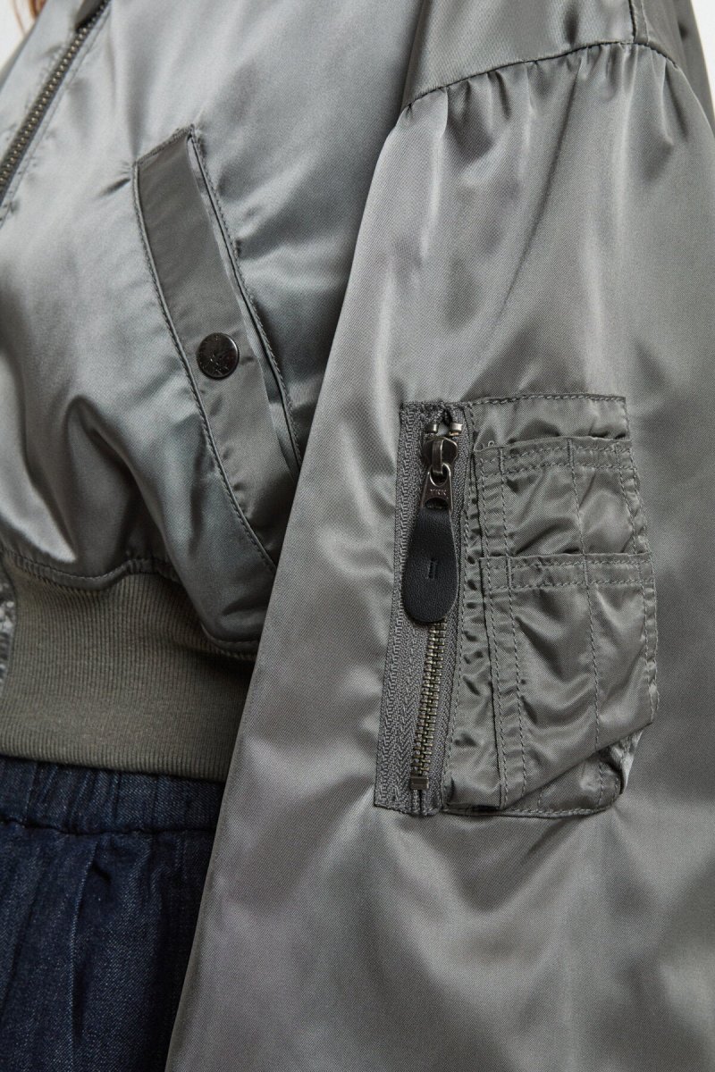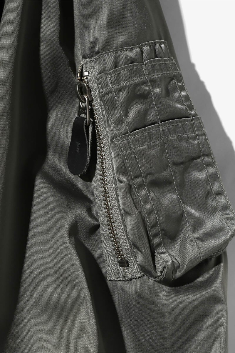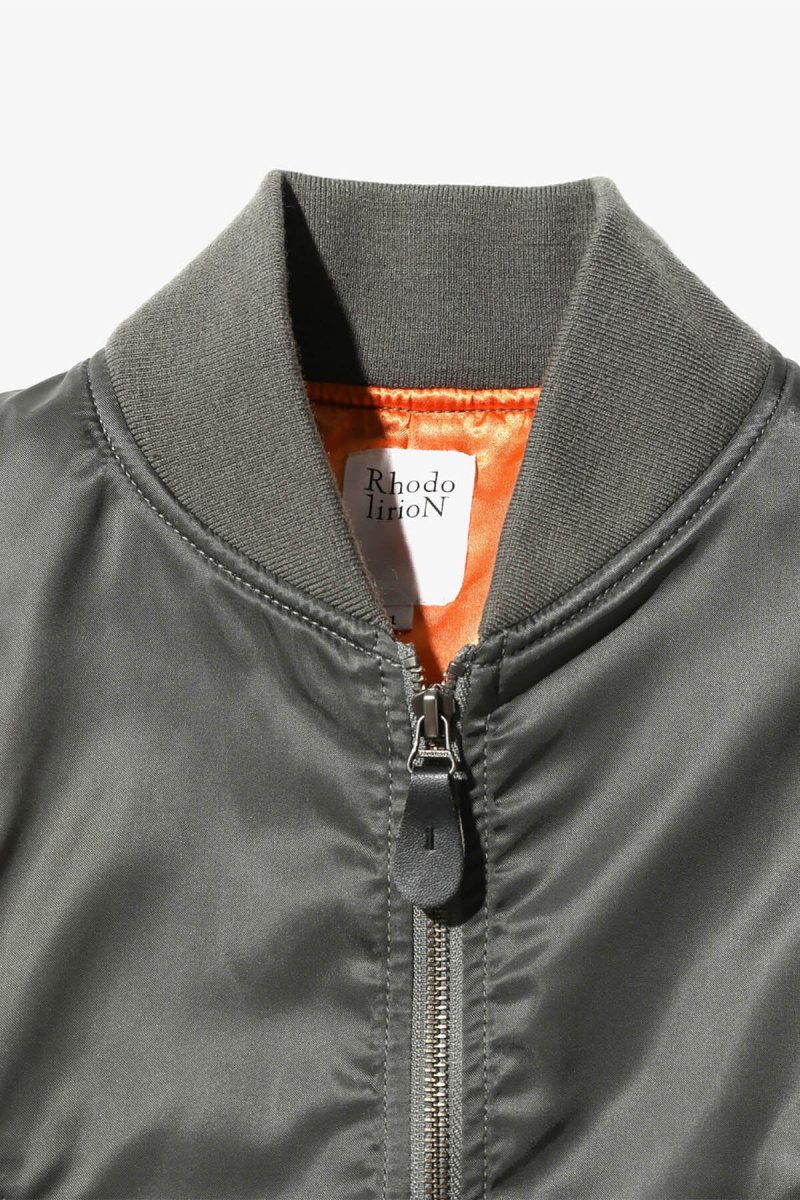 Questa giacca bomber si ispira al modello L-2B da volo ed è stata reinterpretata nello stile RHODOLIRION. Il materiale esterno è in twill di nylon 100%, senza imbottitura, mentre l’interno è foderato in satin di poliestere lucido che scivola facilmente sulla pelle. I colori della fodera sono audaci: arancione di soccorso per l’oliva, rosa per il grigio e viola per il nero. Pur mantenendo la silhouette rilassata tipica della giacca originale, la lunghezza ridotta rende questa giacca da volo facile da abbinare con qualsiasi capo.